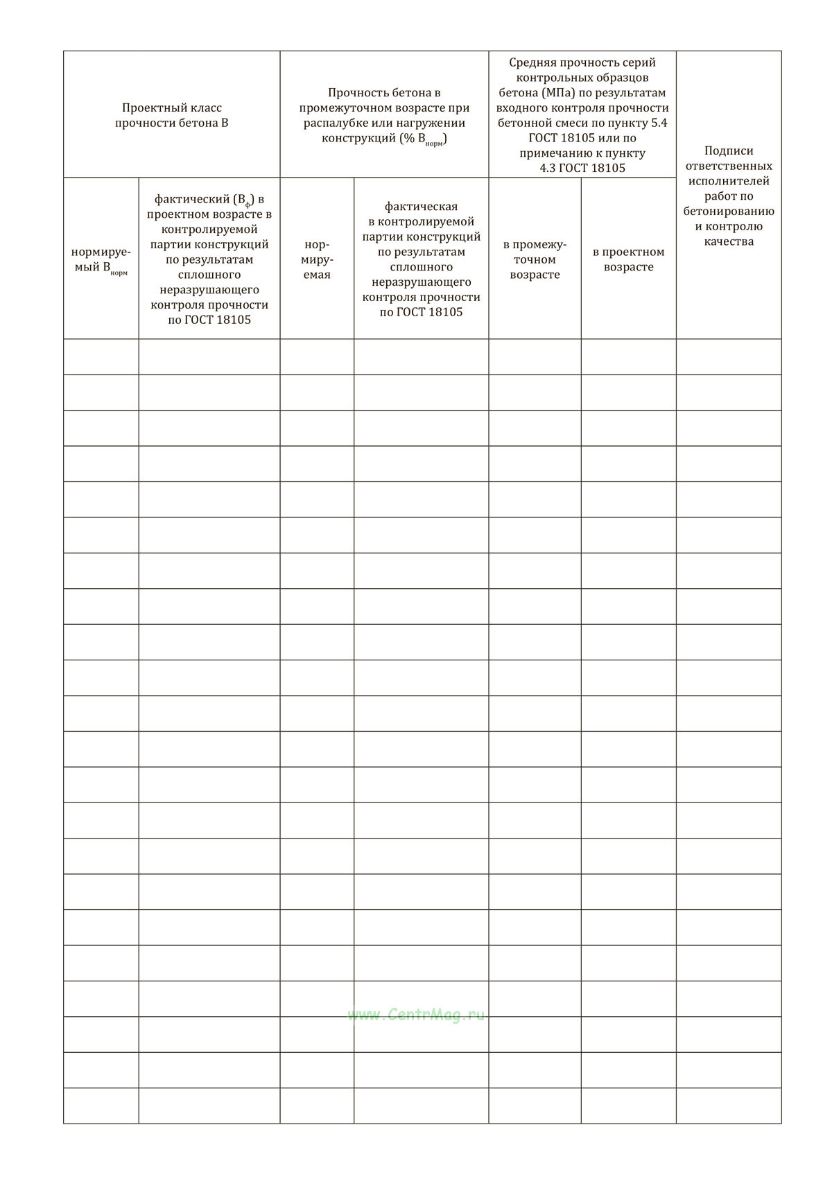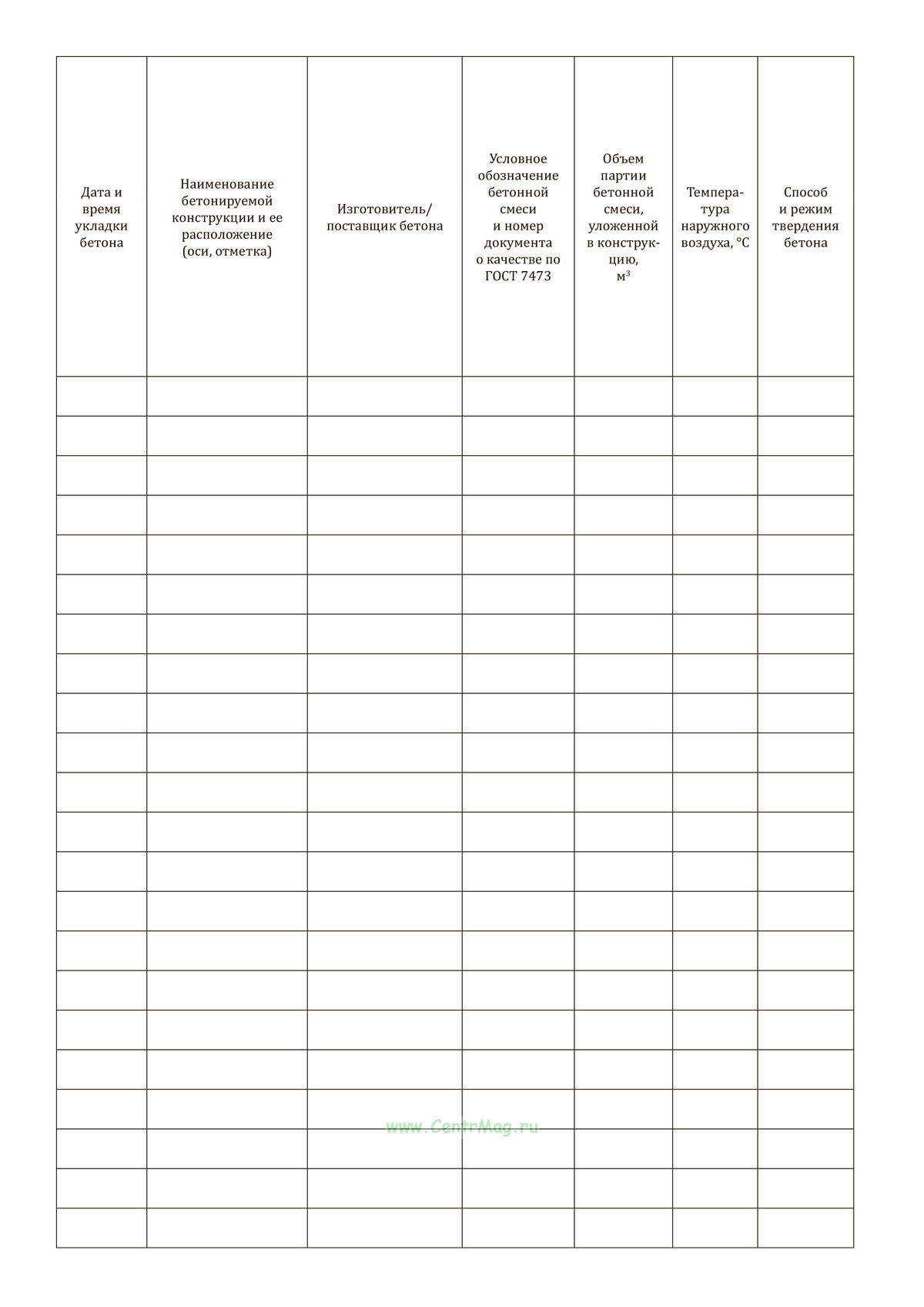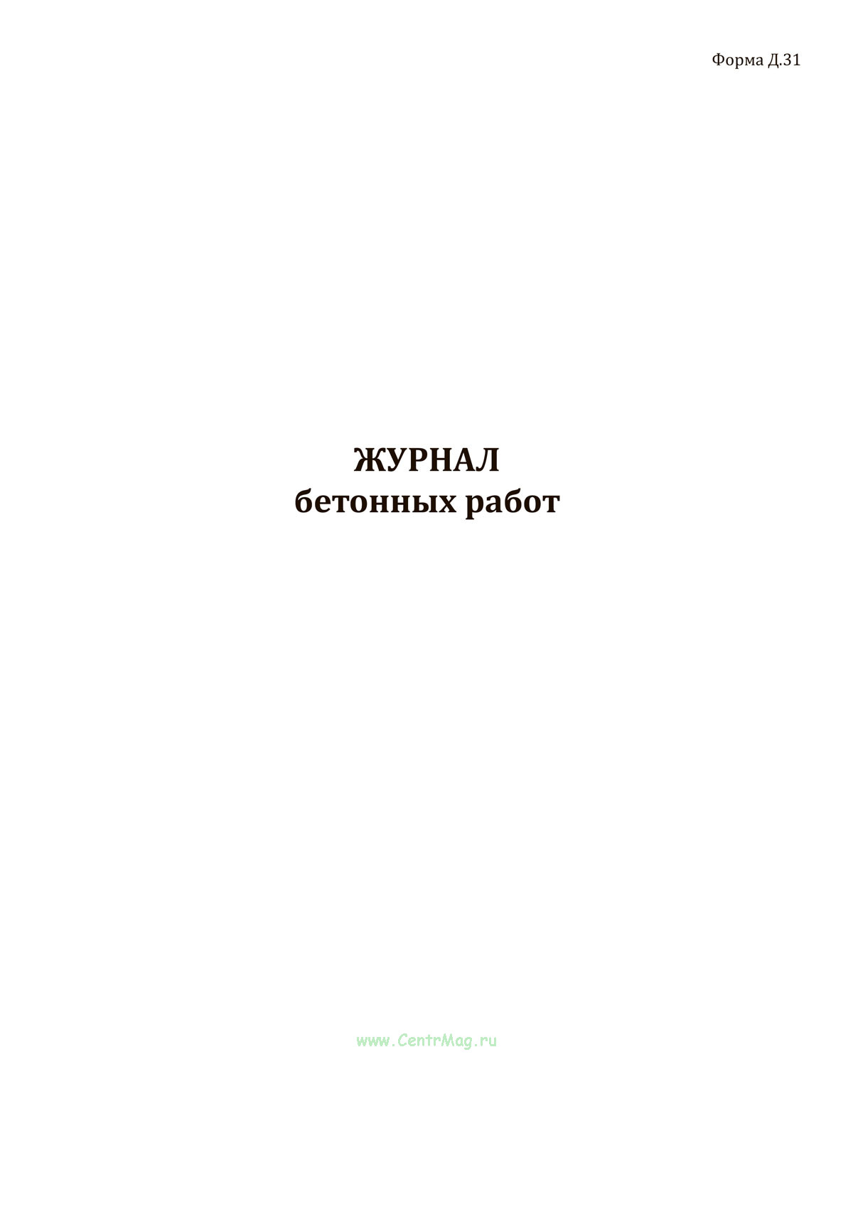 Журнал бетонных работ (Форма Д. 31) имеет графы:
