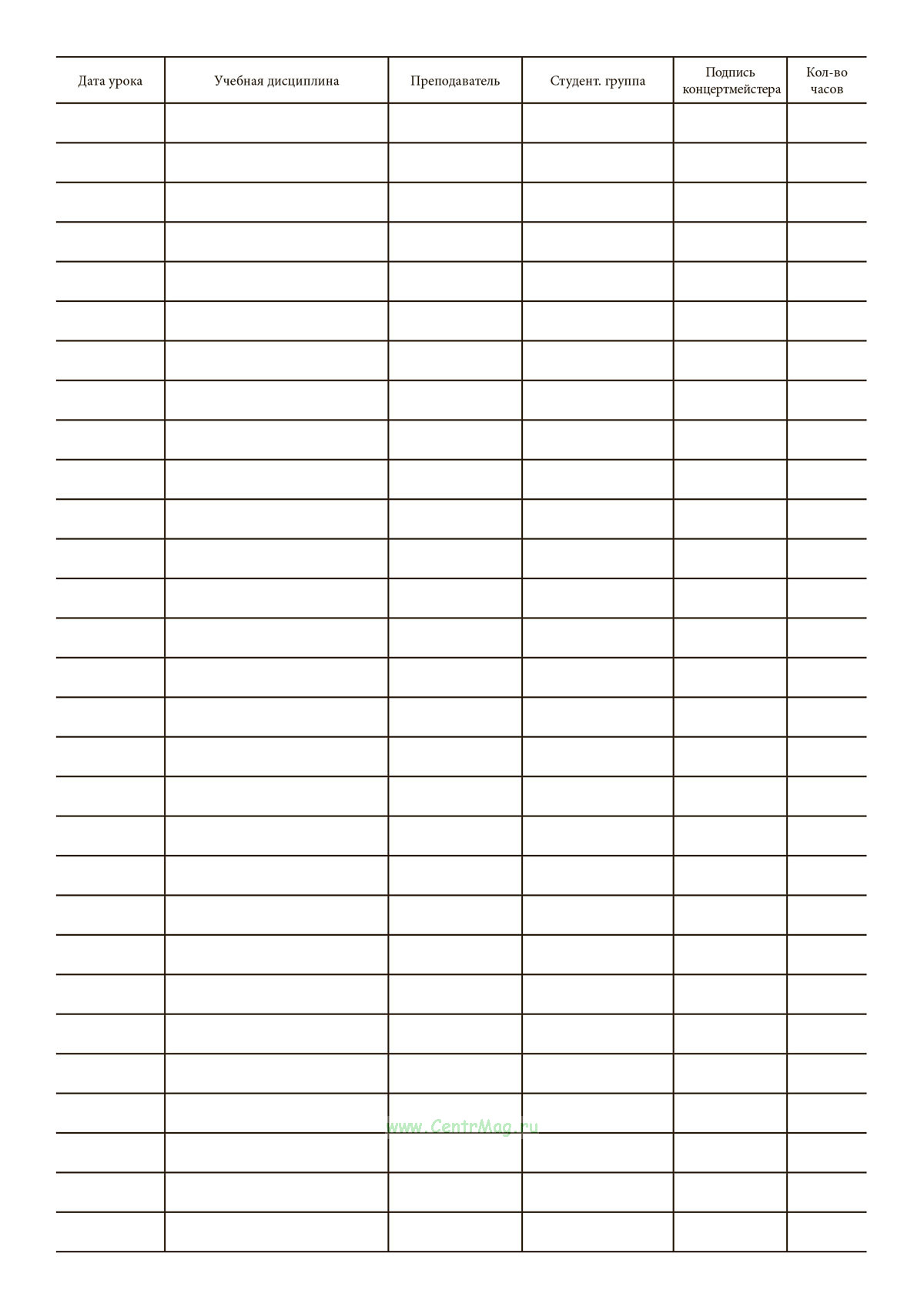 Журнал применяется для регистрации и учета проведения индивидуальных занятий в течение учебного года, контроля учебной нагрузки, фактически проведённых занятий.