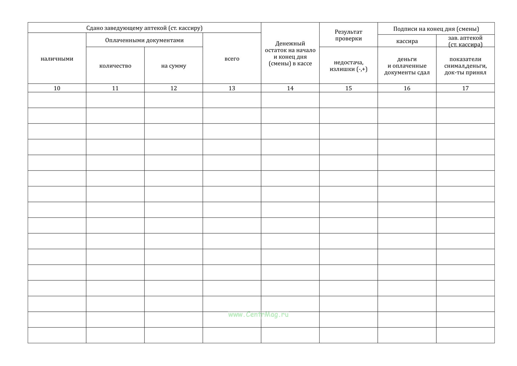 Записи в журнале производятся ежедневно (в дни работы аптеки) в начале и в конце дня (смены), строго в хронологическом порядке, чернилами или пастой шариковых ручек без помарок. Исправления должны быть оговорены и заверены подписями кассира, руководителя аптечного учреждения или старшего кассира.