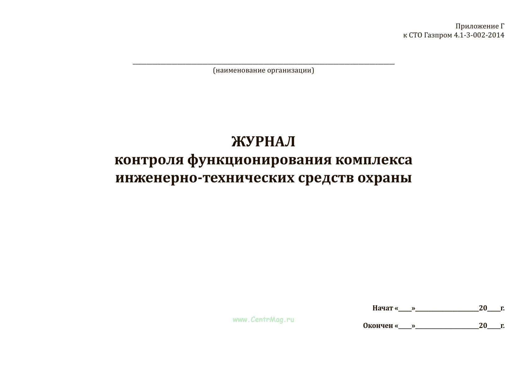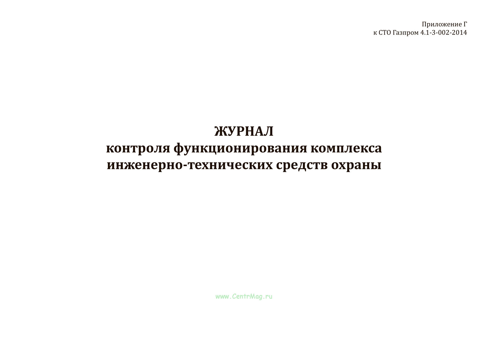 Форма Журнала контроля функционирования комплекса инженерно-технических средств охраны соответствует Приложению Г к распоряжению ОАО "Газпром" от 14 августа 2014 г. № 193