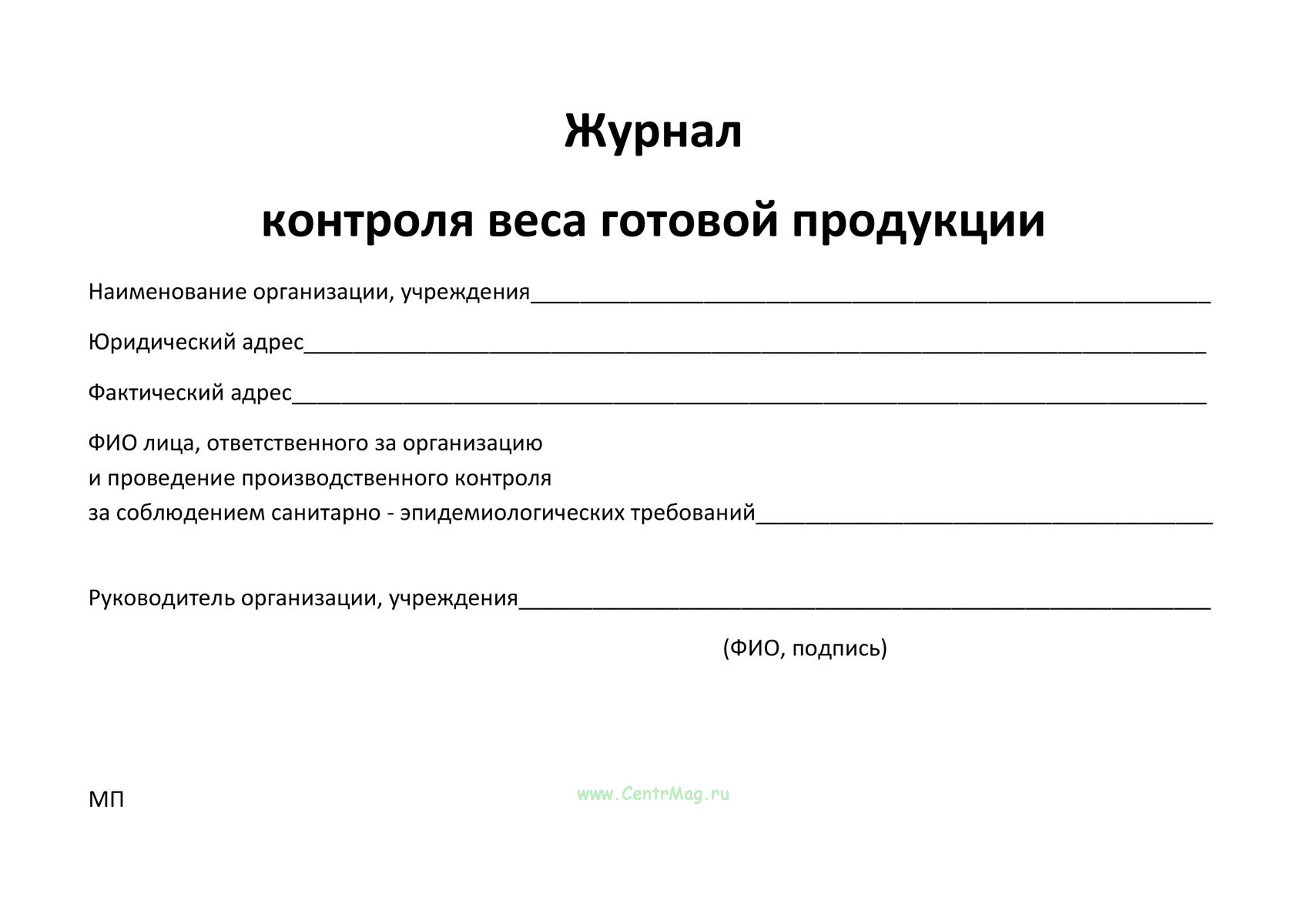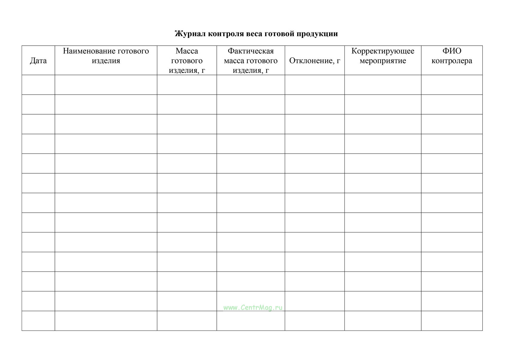 Журнал применяется для регулярного контроля фактического веса готовой продукции, сравнения его с установленными нормами и фиксации выявленных отклонений, а также принятых корректирующих мер.