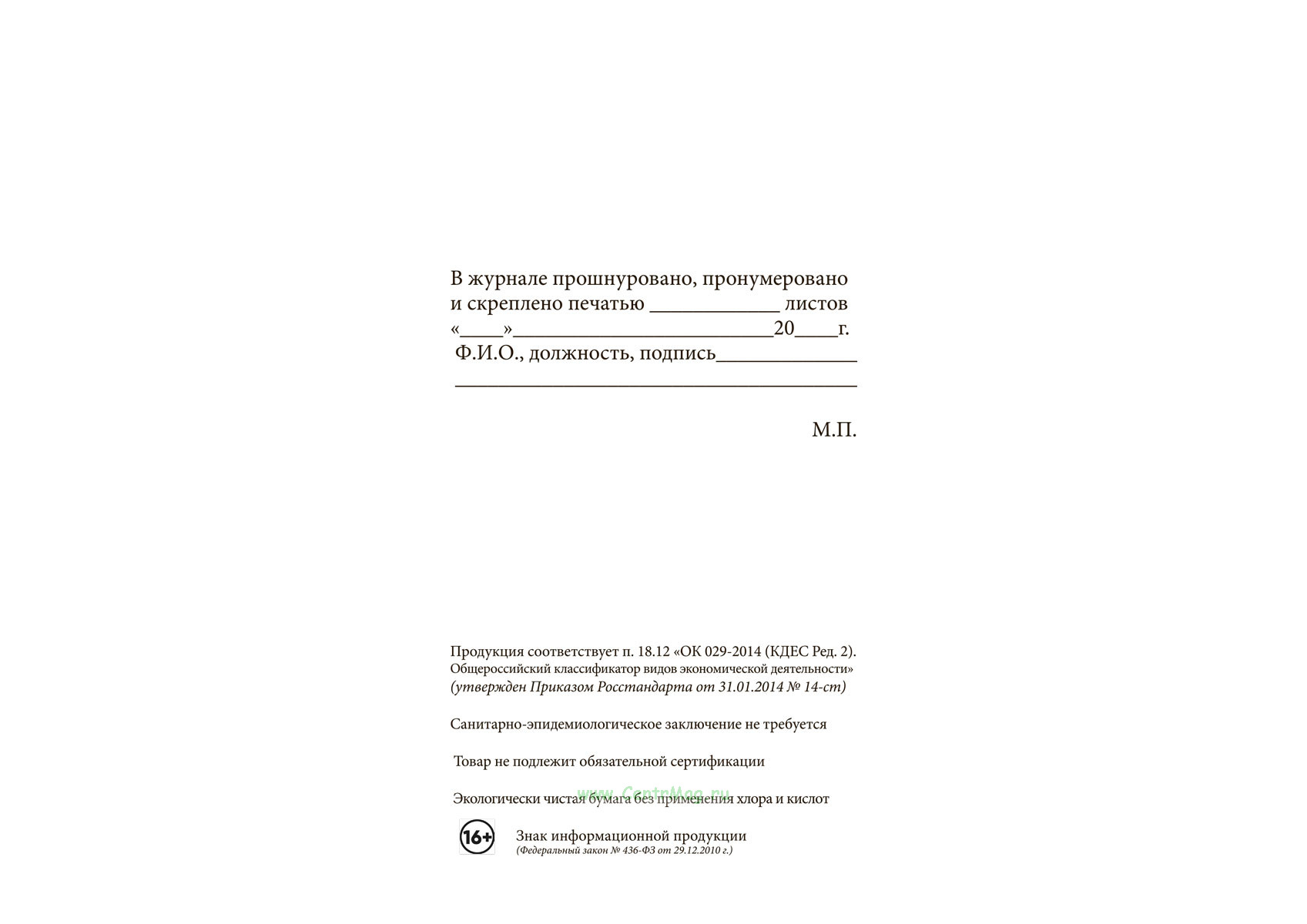 Вы получаете печатную продукцию прошнурованной и c местом для вашей печати в соответствии с действующими нормативными документами: