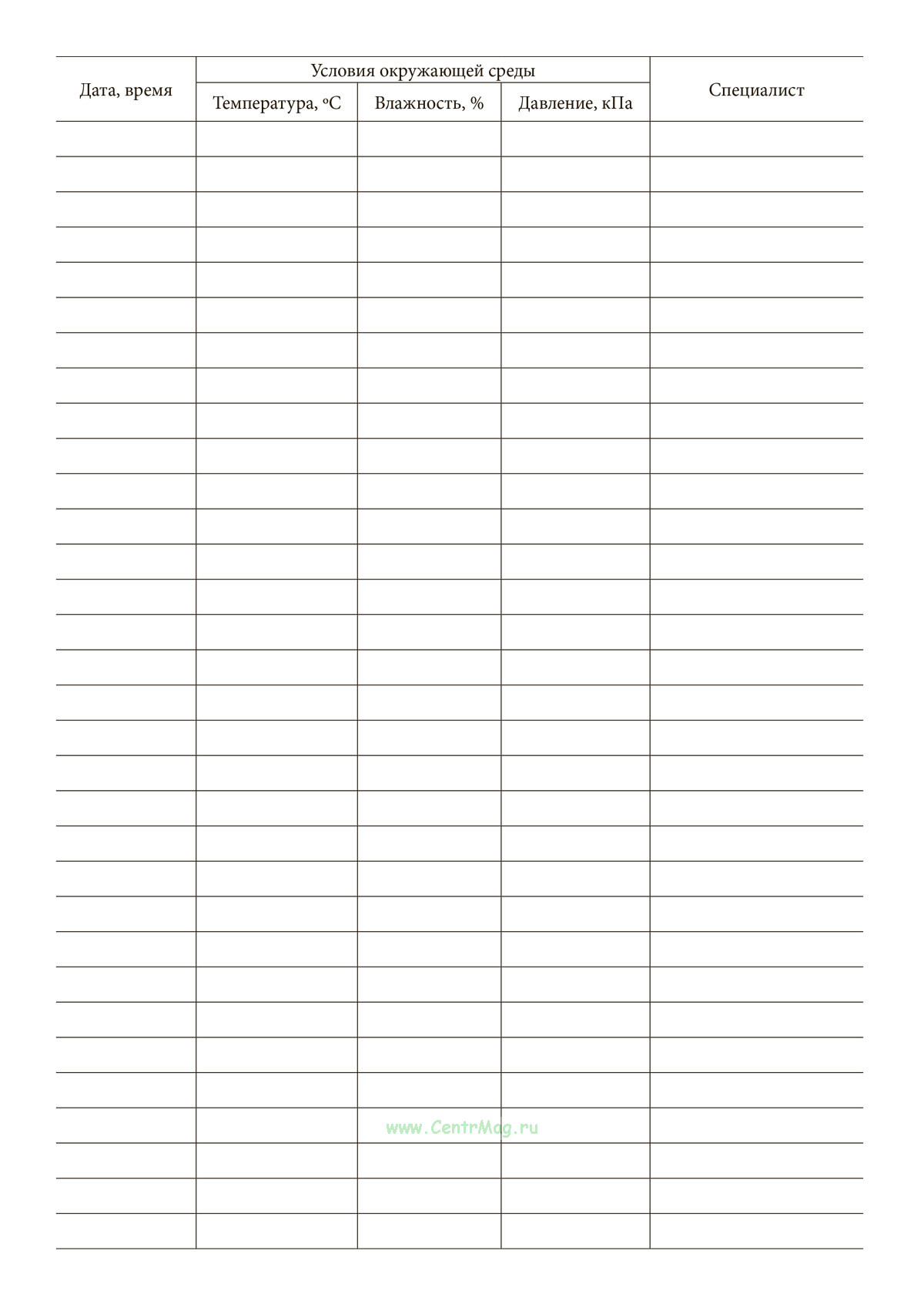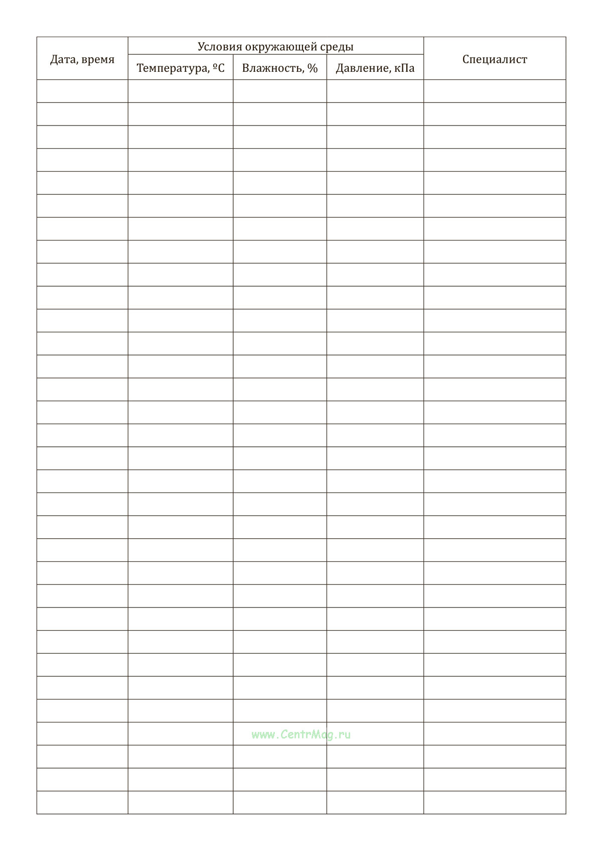 Журнал контроля условий окружающей среды имеет графы: