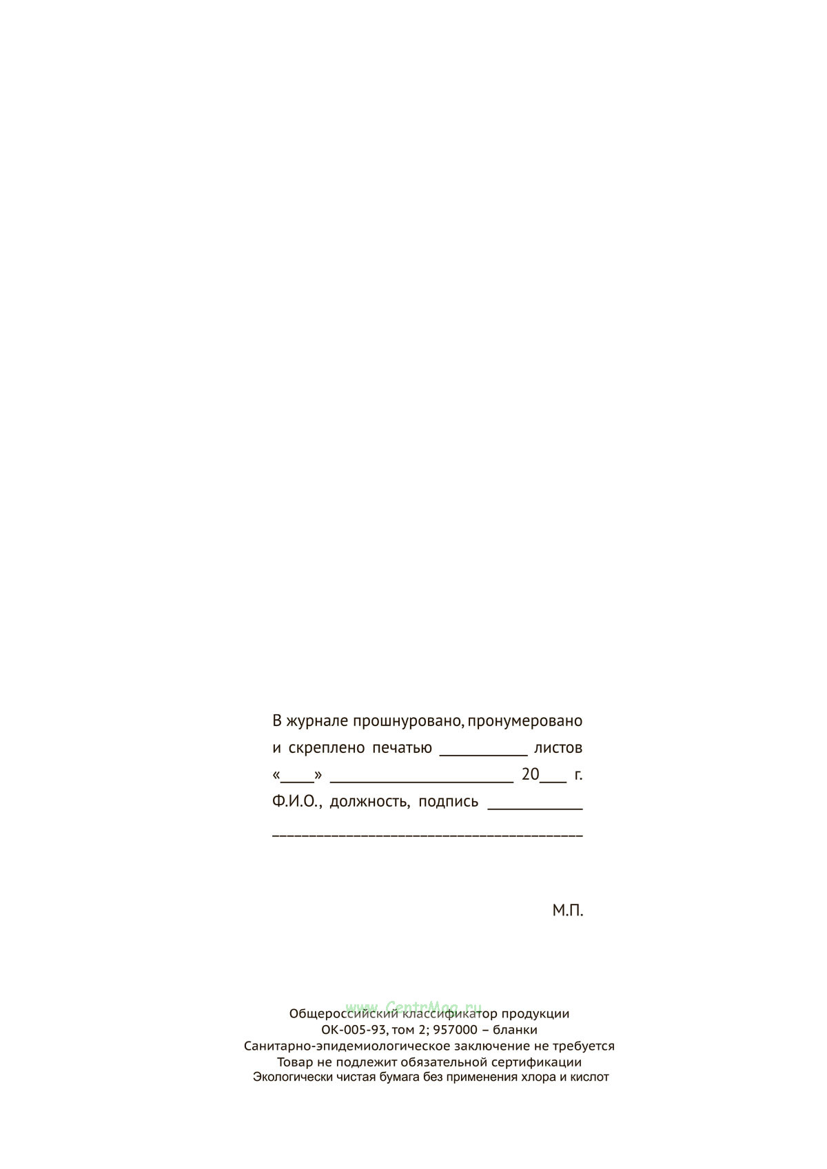 Вы получаете печатную продукцию прошнурованной и c местом для вашей печати в соответствии с действующими нормативными документами: