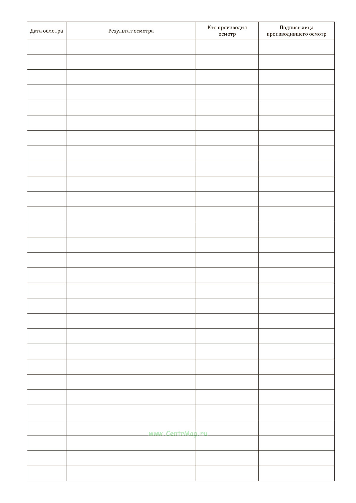 Журнал осмотра грузозахватных приспособлений и тары имеет графы: