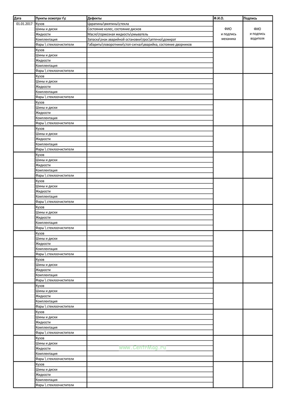 Журнал осмотра ТС при выходе на смену имеет графы: