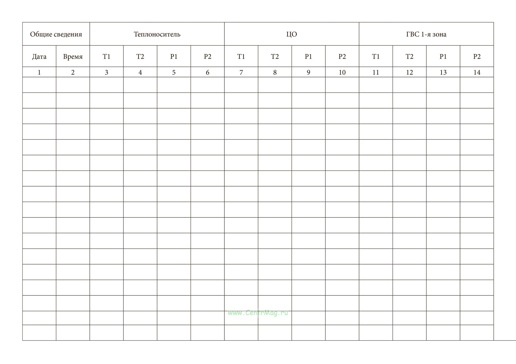 Журнал применяется для регулярного учета и контроля параметров работы индивидуального теплового пункта, включая температуру и давление теплоносителя в системах отопления, горячего и холодного водоснабжения. Он используется для мониторинга стабильности работы ИТП, своевременного выявления отклонений от нормального режима и обеспечения надежной и безопасной эксплуатации инженерных систем здания.