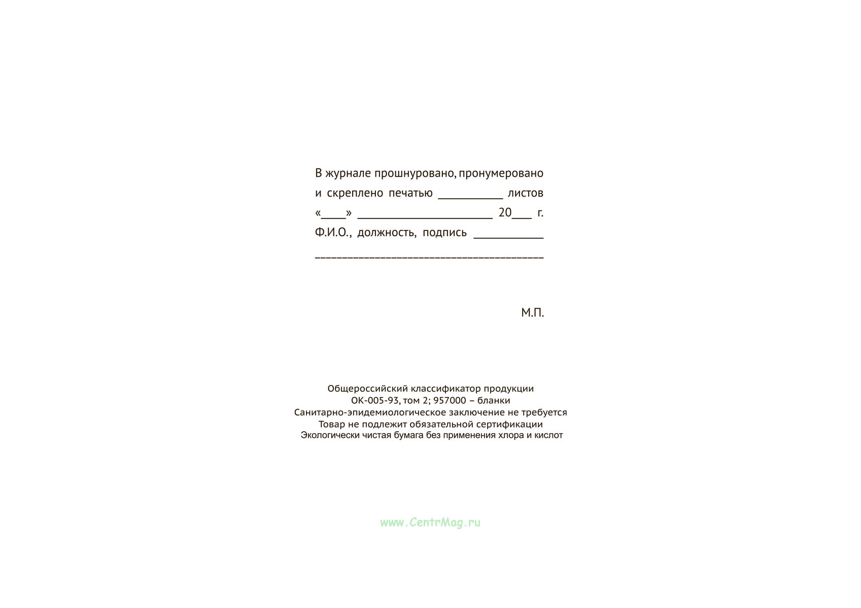 Вы получаете печатную продукцию прошнурованной и c местом для вашей печати в соответствии с действующими нормативными документами: