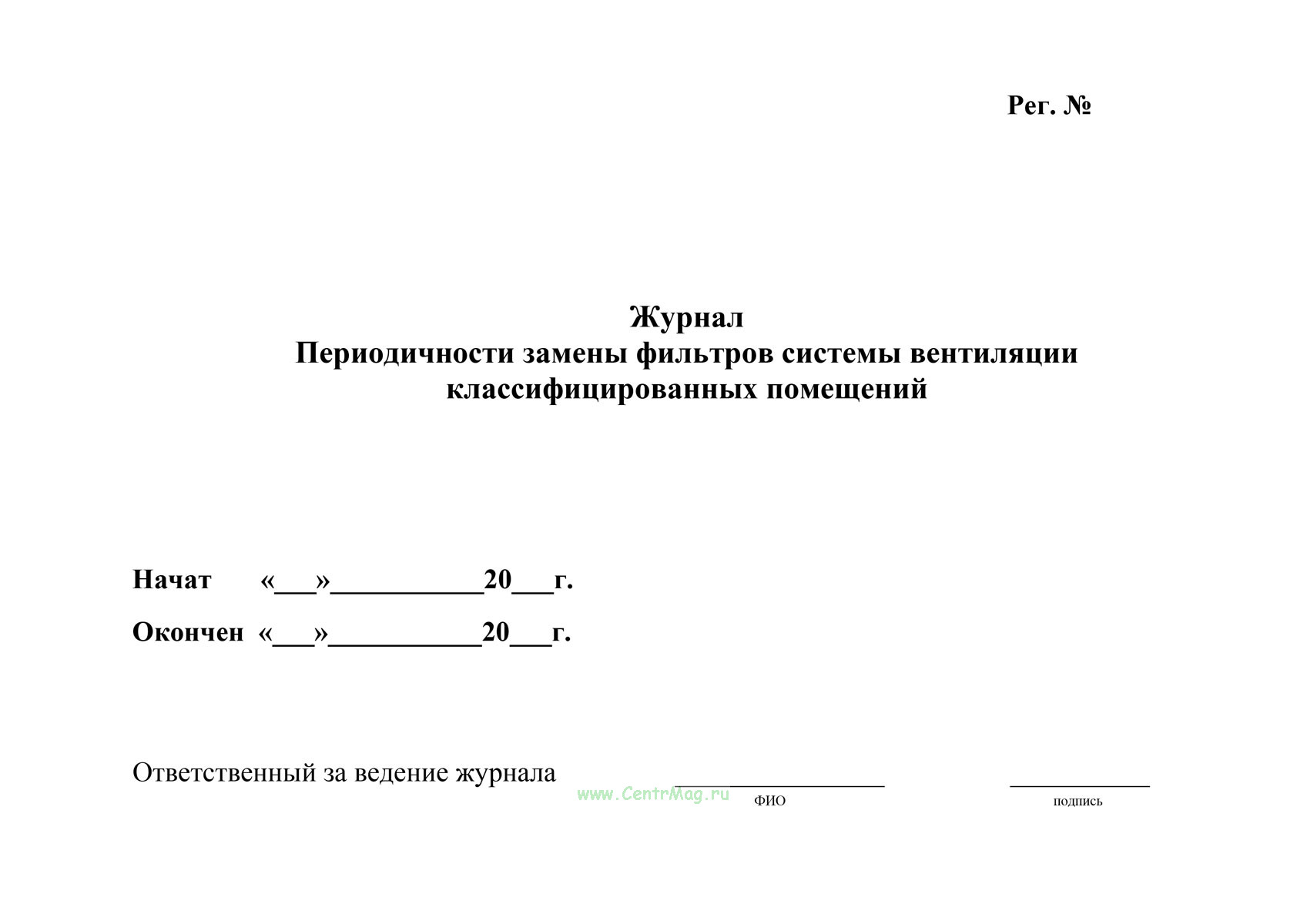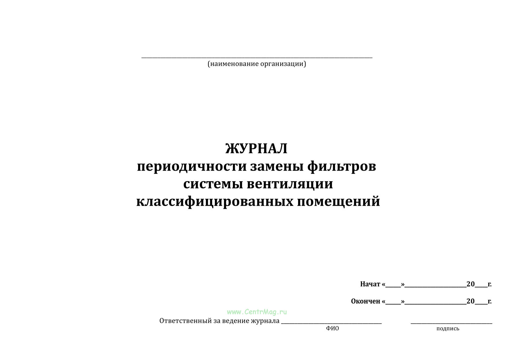 Журнал периодичности замены фильтров системы вентиляции классифицированных помещений