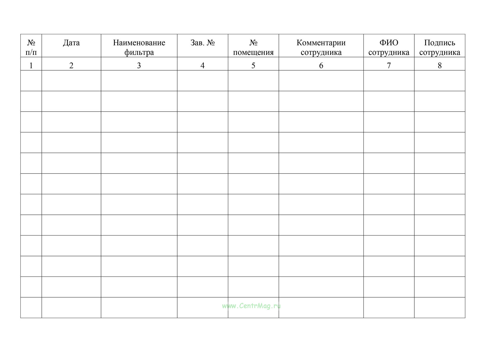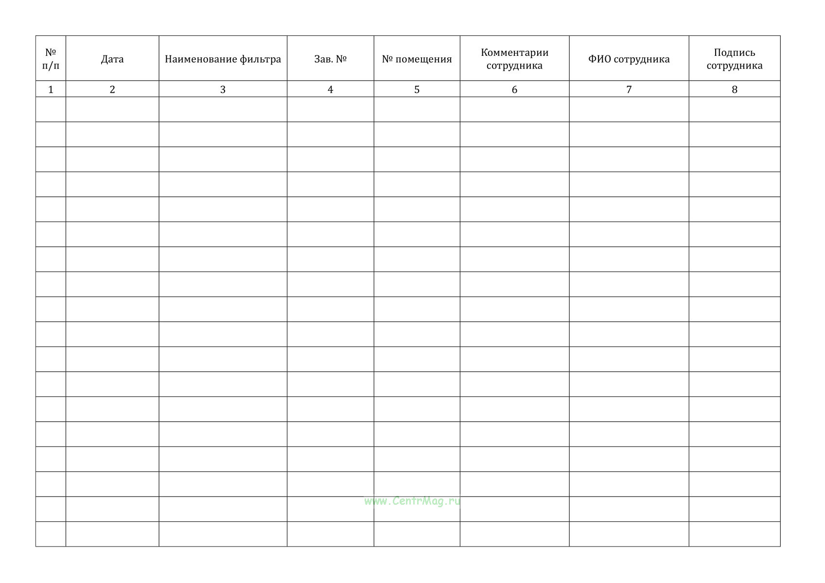 Журнал периодичности замены фильтров системы вентиляции классифицированных помещений имеет графы: