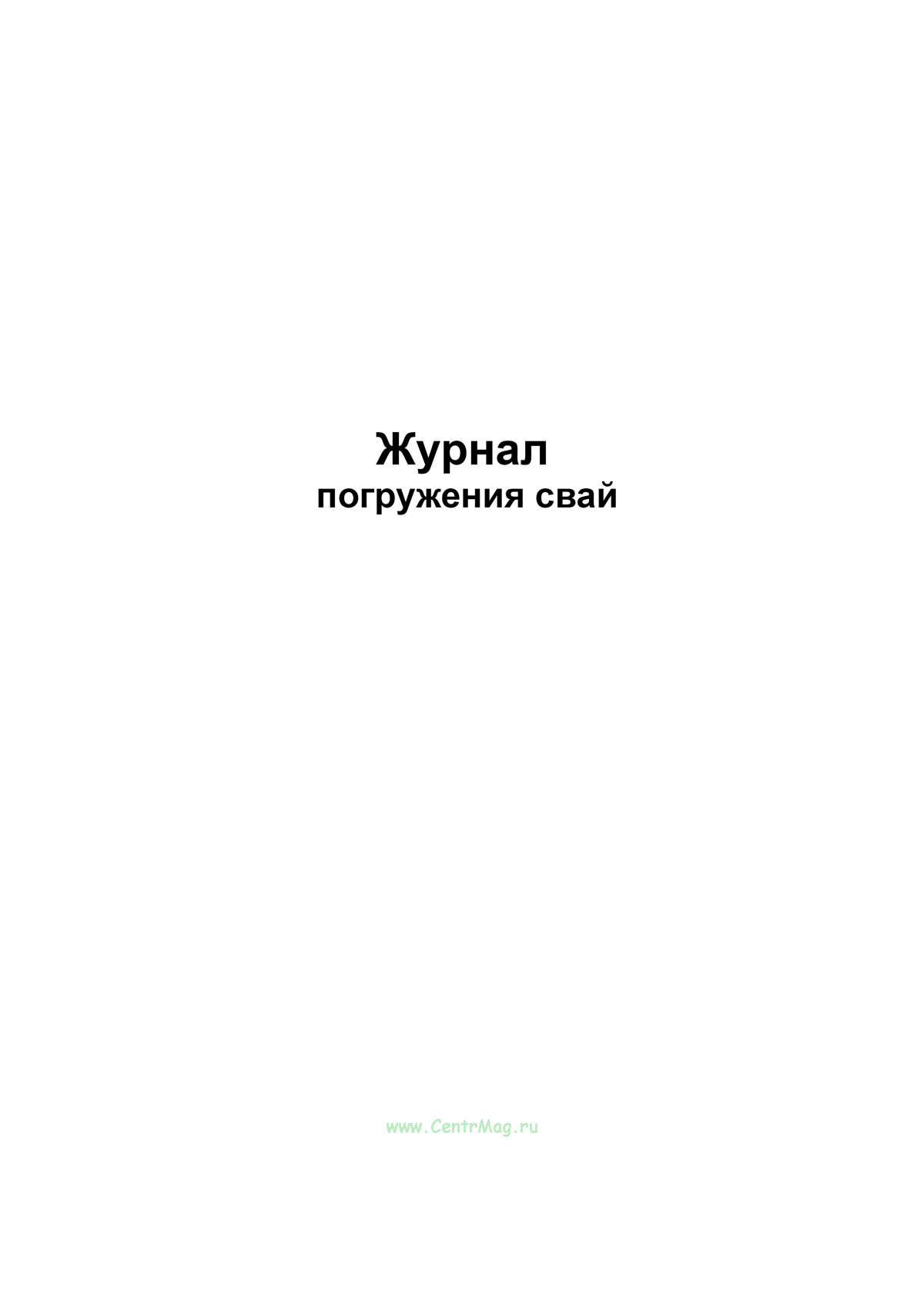 Журнал применяется для фиксации технологических параметров и результатов выполнения свайных работ, включая характеристики оборудования, условий забивки и контрольных значений отказа свай.