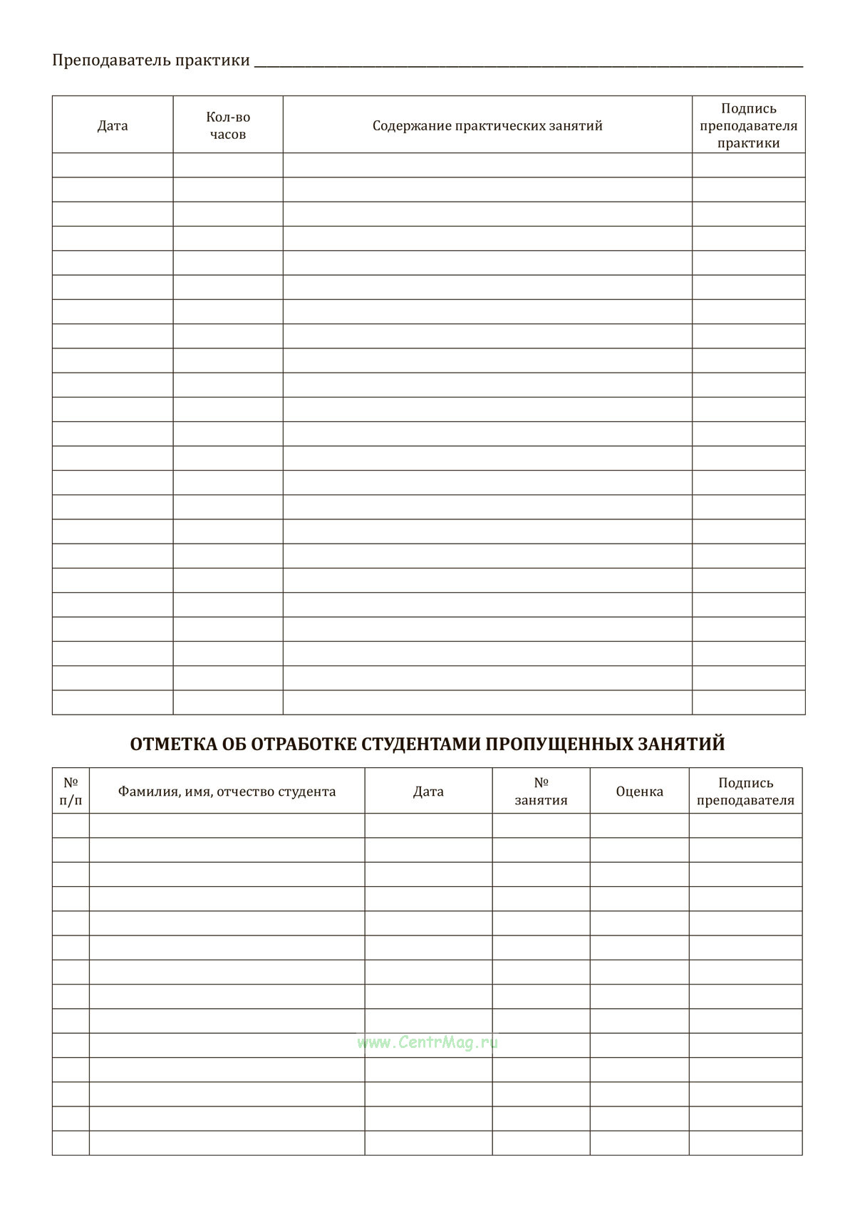 Журнал используется для учета проведения практических занятий в системе среднего профессионального образования, фиксации посещаемости и успеваемости студентов, отражения содержания занятий и учета отработки пропущенных часов.