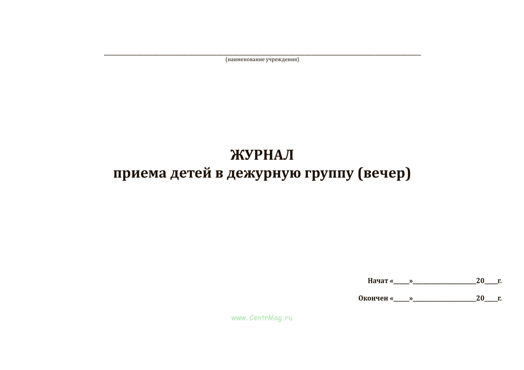 Журнал приема детей в дежурную группу (вечер) имеет графы:
