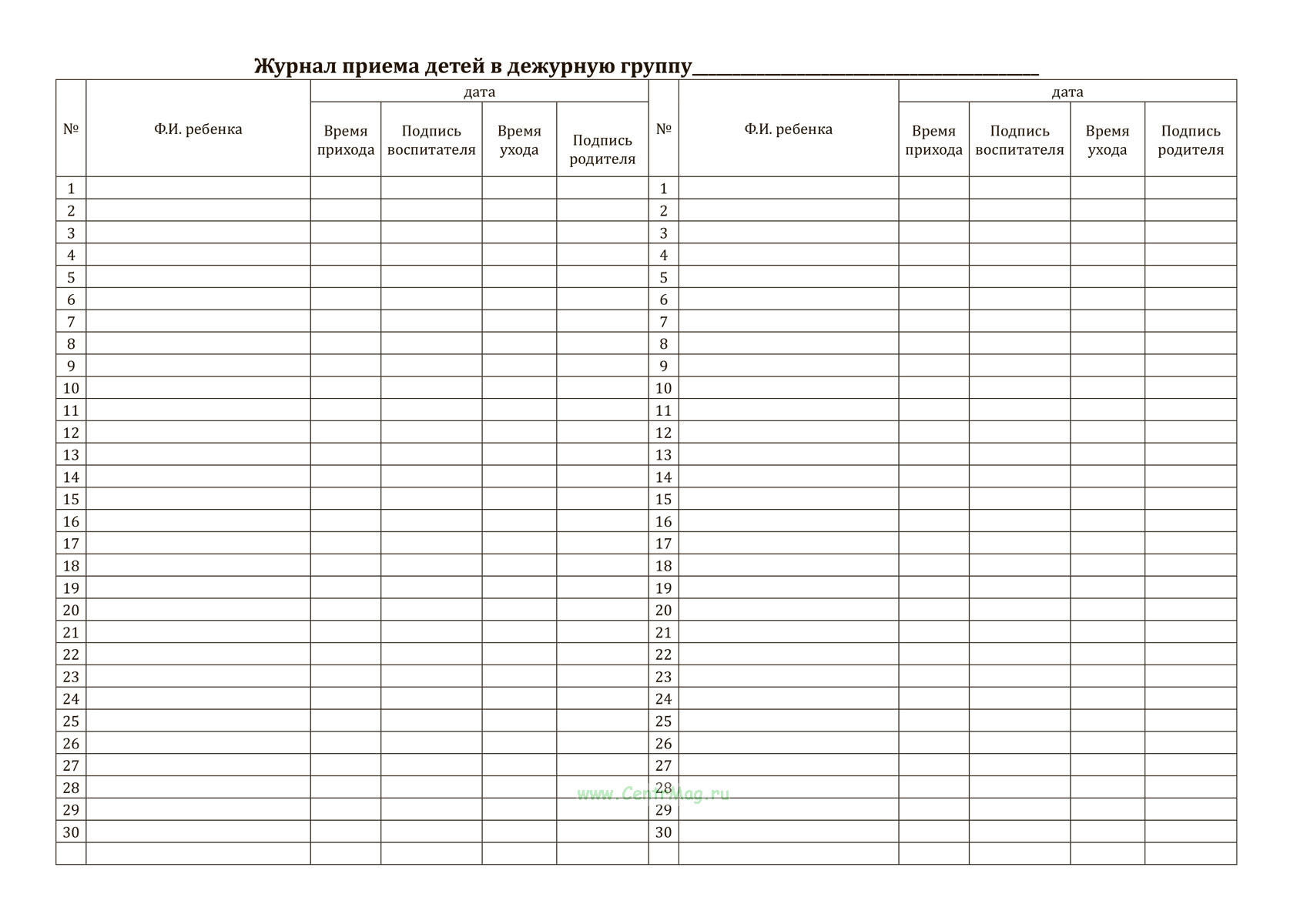 Журнал приёма детей в дежурную группу применяется для официального учёта времени прихода и ухода ребёнка в детском учреждении. В нём фиксируются фамилии детей, даты, отметки воспитателя о приёме и передаче ребёнка, а также подписи родителей. Такой журнал нужен для контроля посещаемости, обеспечения безопасности и подтверждения факта передачи ребёнка от родителей к воспитателю и обратно.