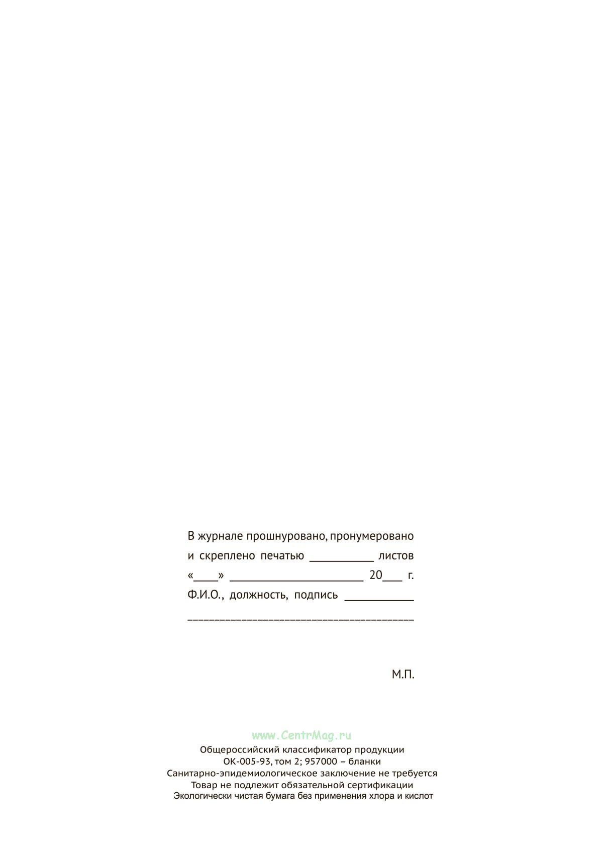 Вы получаете печатную продукцию прошнурованной и c местом для вашей печати в соответствии с действующими нормативными документами: