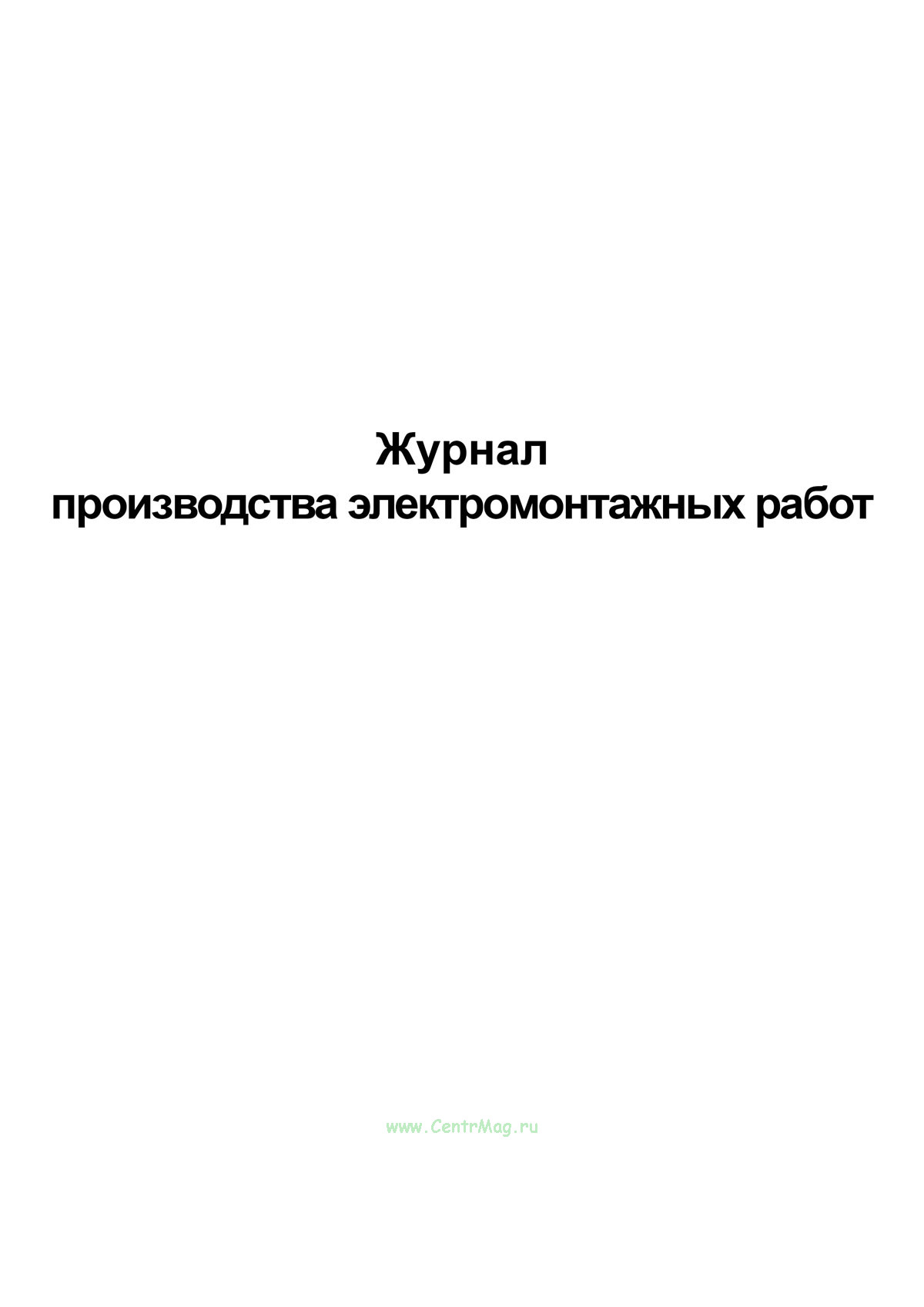 Журнал производства электромонтажных работ используется для документирования процесса выполнения электромонтажных работ на объекте капитального ремонта. В него включаются акты промежуточной приёмки скрытых и ответственных конструкций, сведения об условиях и ходе выполнения работ, а также результаты операционного контроля за соблюдением установленных норм. Журнал обеспечивает прослеживаемость, фиксирует соответствие работ проектной документации и требованиям нормативных документов.