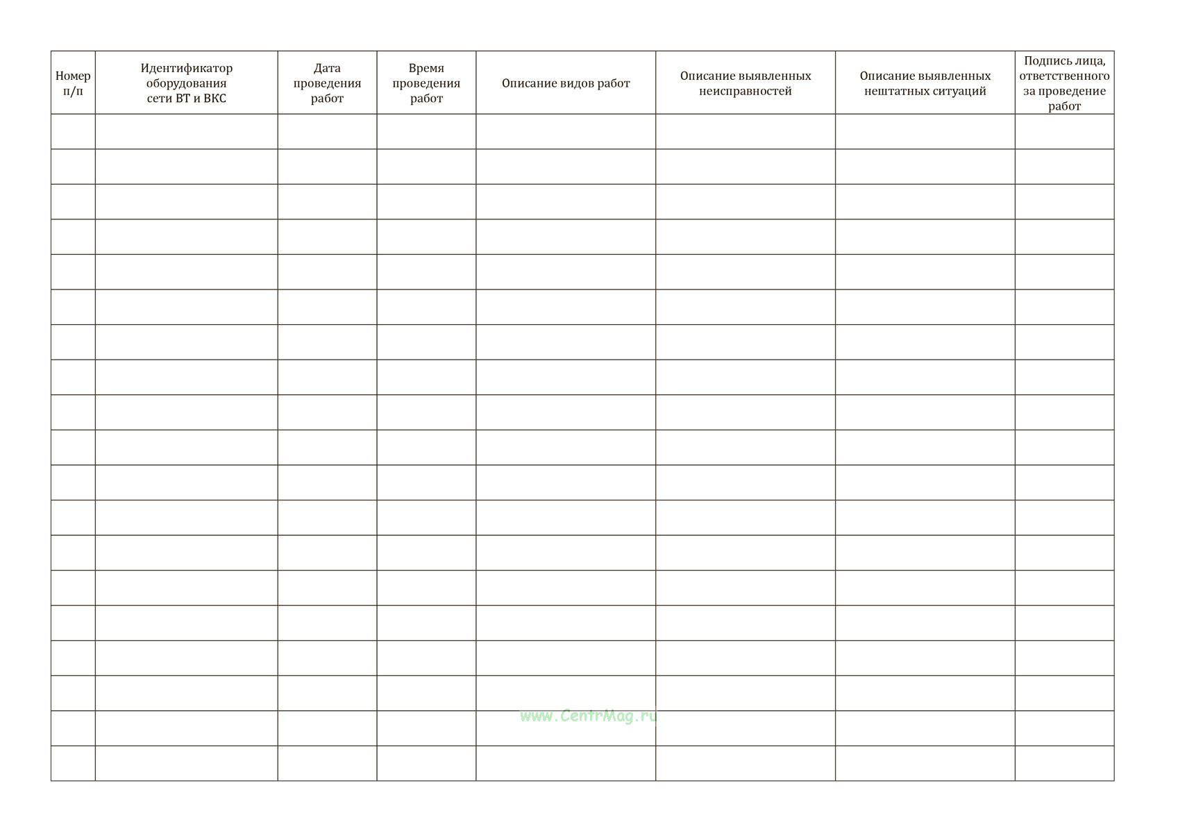 Журнал проведения аварийного технического обслуживания имеет графы:
