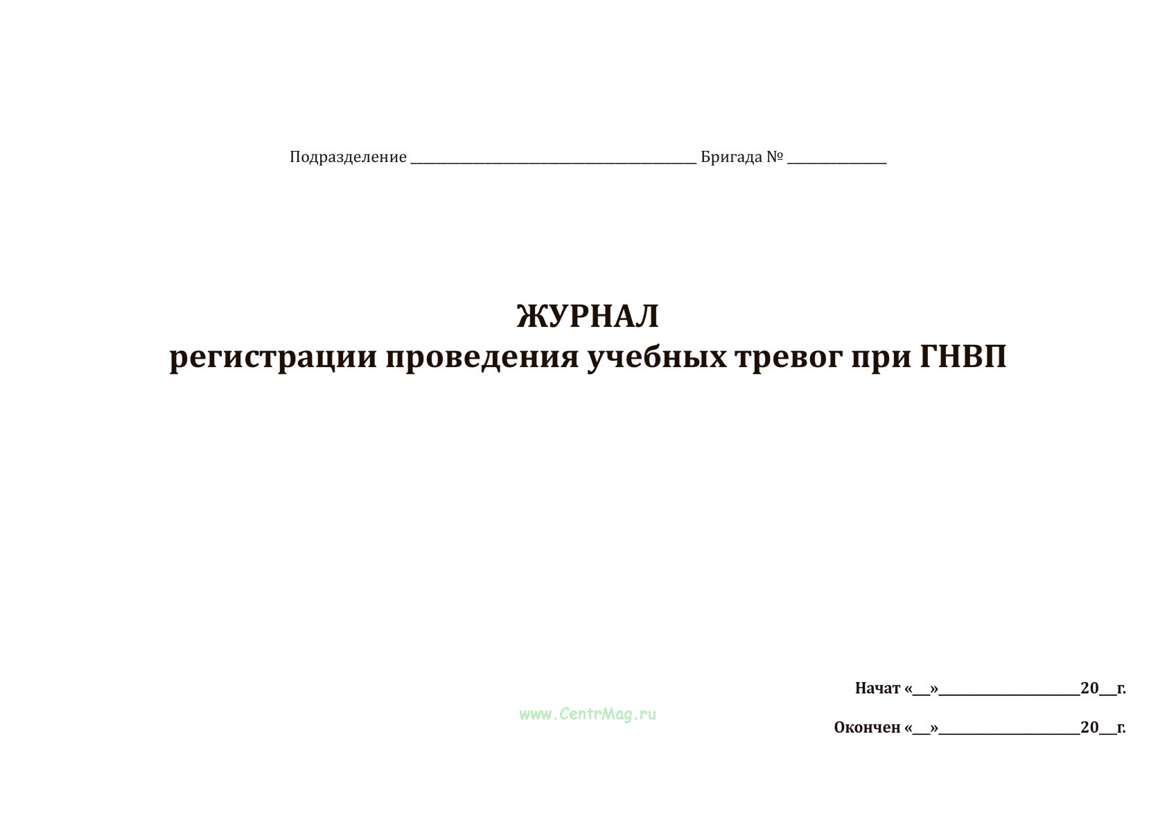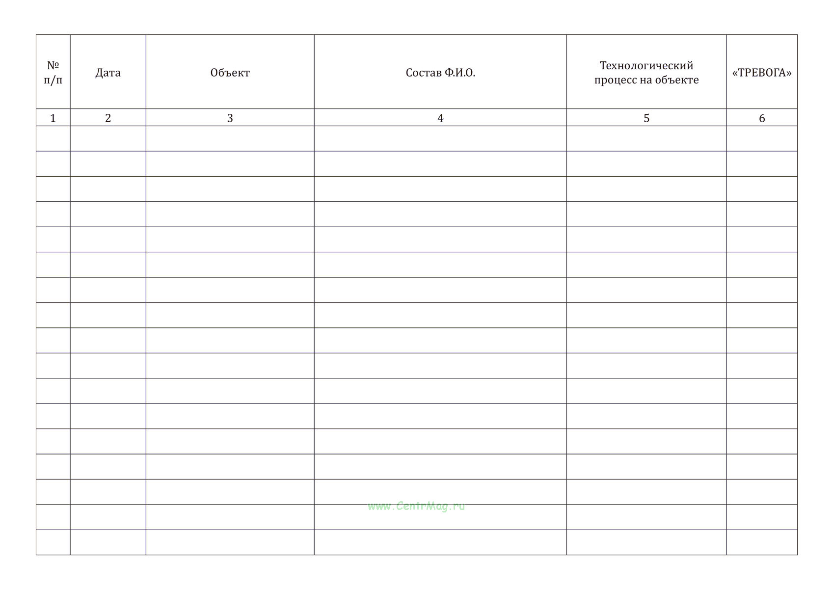 Журнал применяется для учета и анализа учебных тревог, фиксации состава участников, хода и результатов тренировок, оценки действий персонала и уровня готовности к нештатным и аварийным ситуациям.