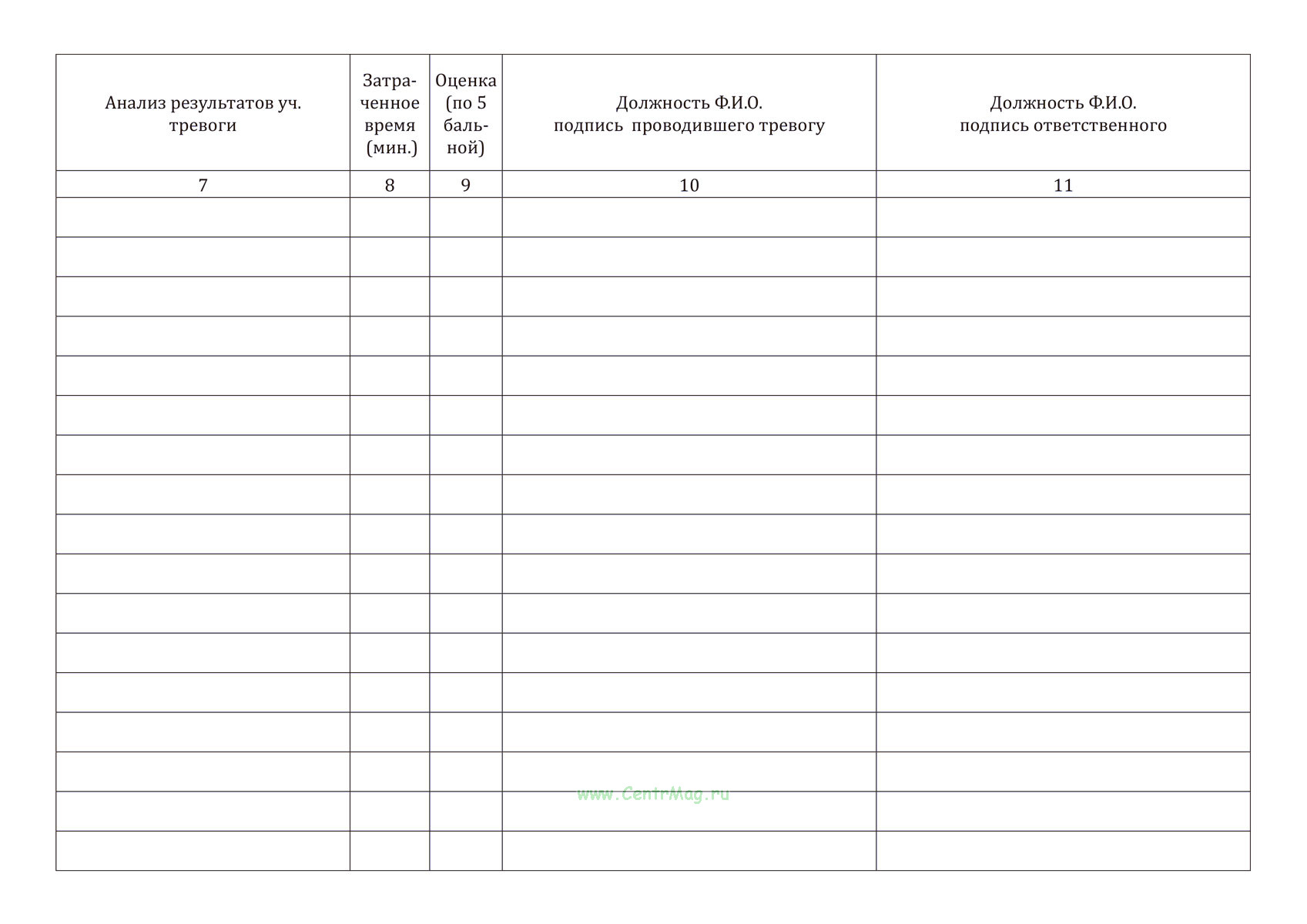 10. Должность Ф.И.О. подпись проводившего тревогу