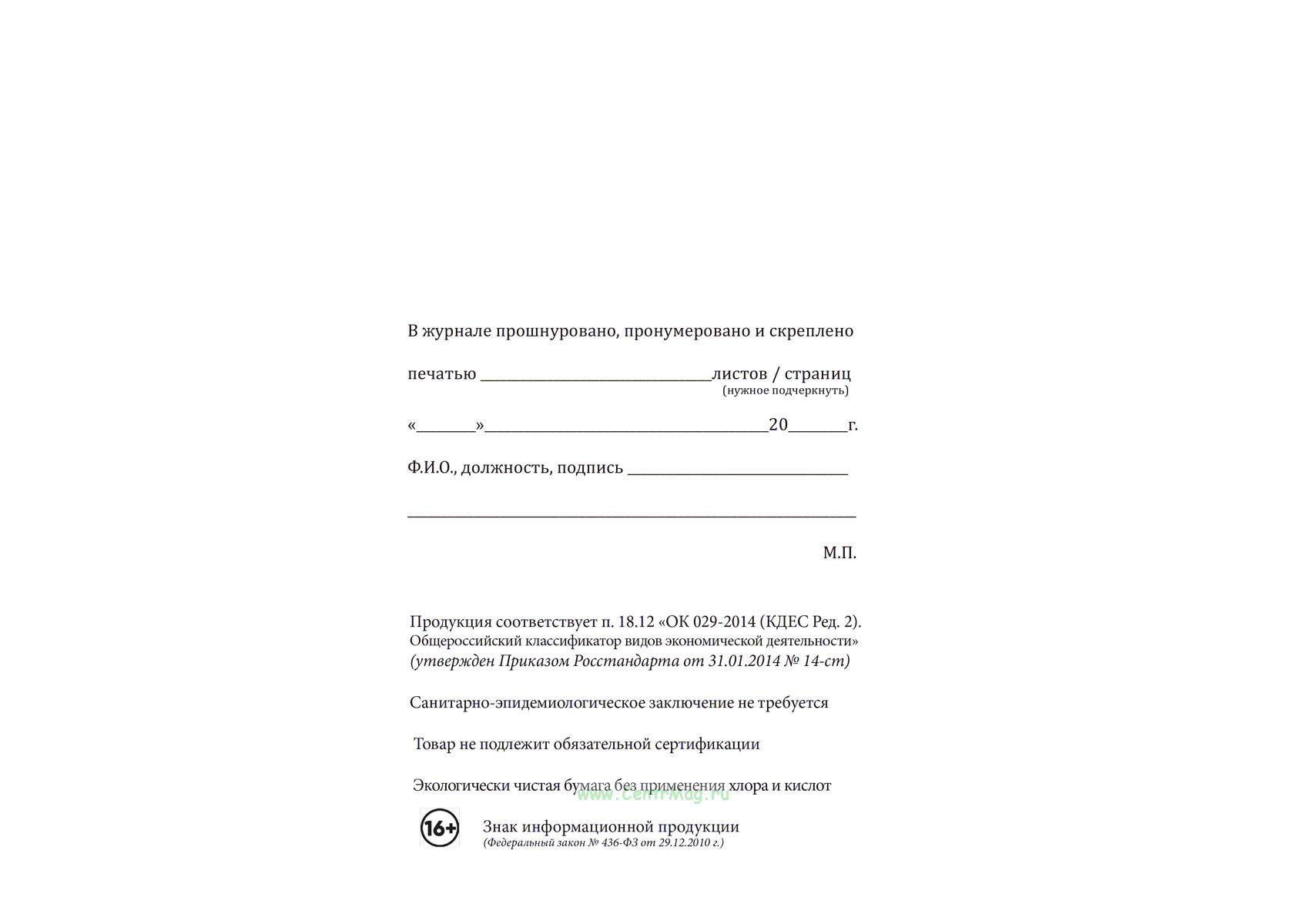 Вы получаете печатную продукцию прошнурованной и c местом для вашей печати в соответствии с действующими нормативными документами: