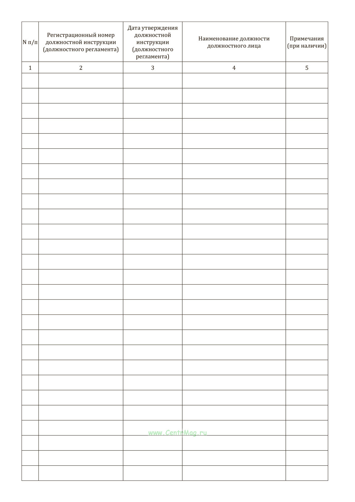 Журнал регистрации должностных инструкций (должностных регламентов) имеет графы: