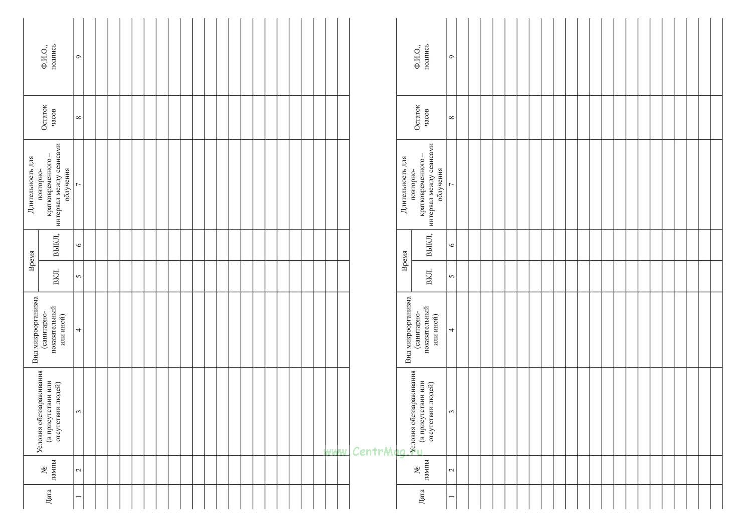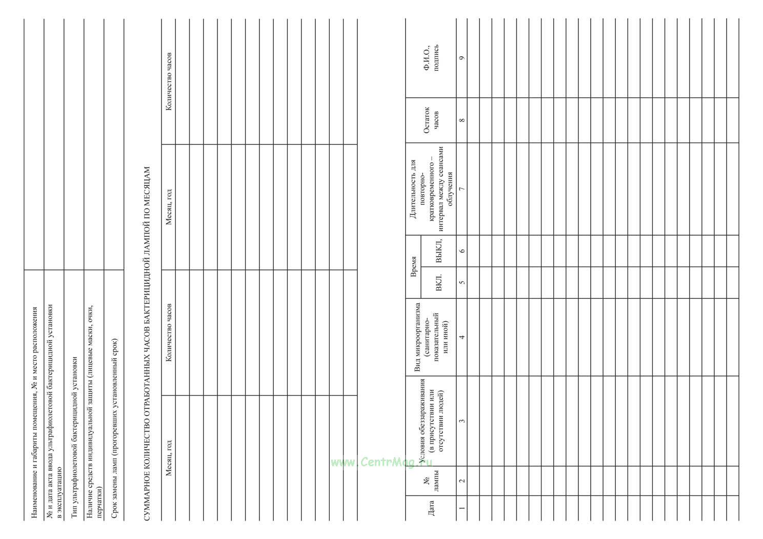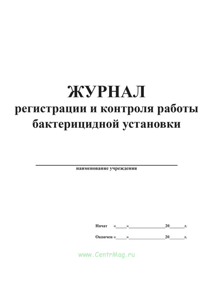 См. также: Журнал регистрации и контроля бактерицидной установки