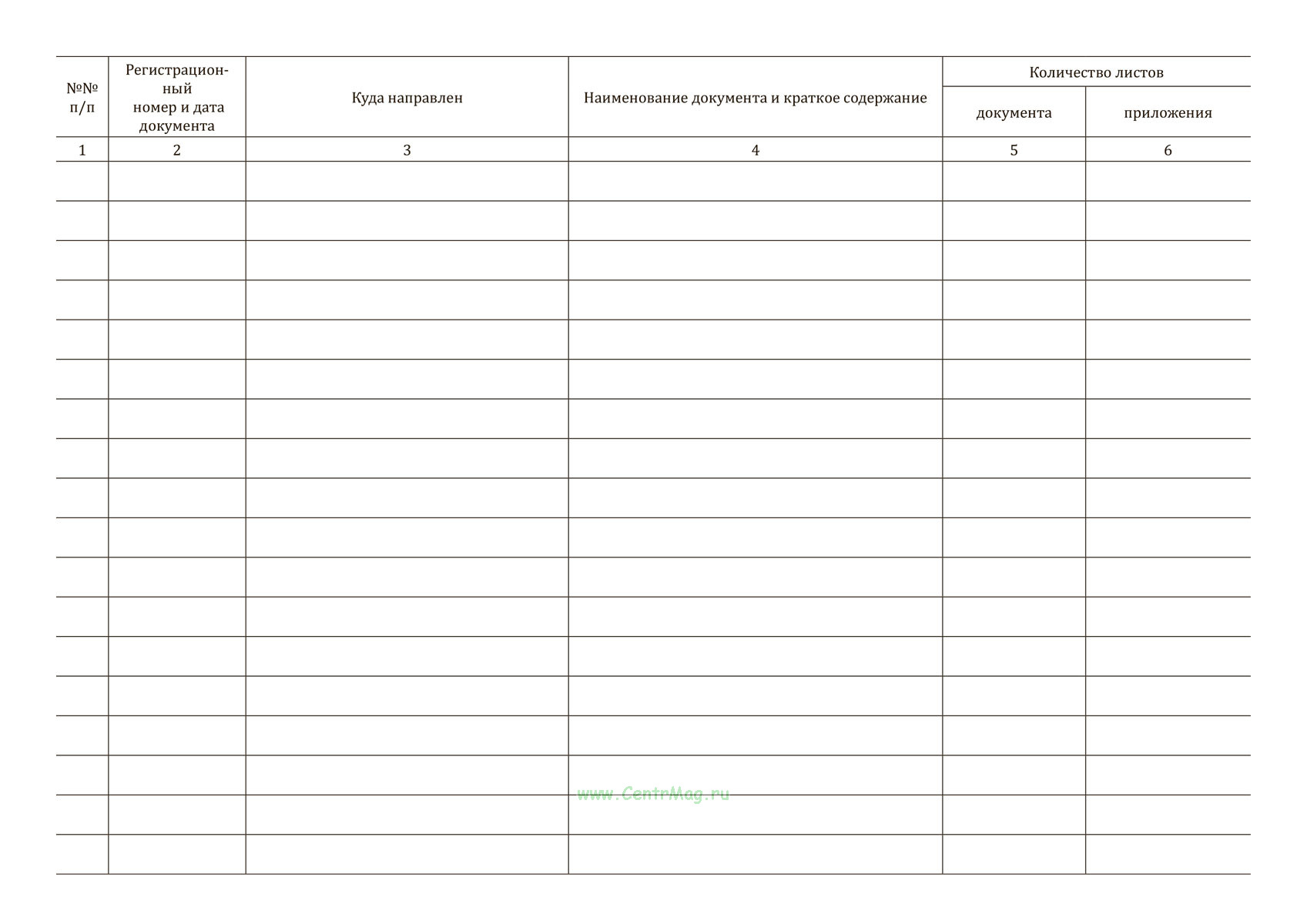 Журнал применяется для учёта, регистрации и контроля движения исходящих конфиденциальных документов в организации, с фиксацией сведений об их отправке, содержании, количестве экземпляров, исполнителях, получении, возврате и последующем хранении или уничтожении.
