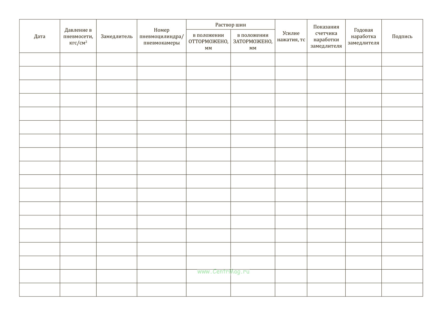 Журнал регистрации параметров вагонных замедлителей имеет графы: