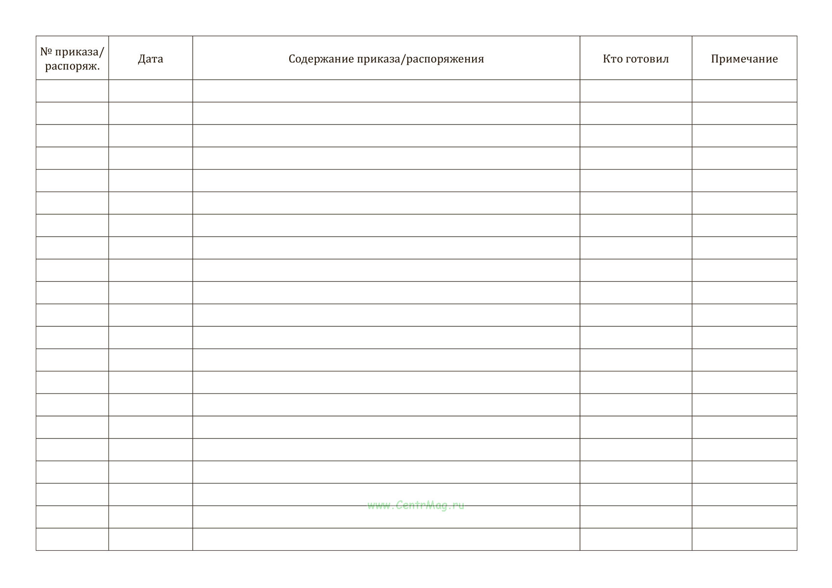 Журнал регистрации приказов и распоряжений имеет графы: