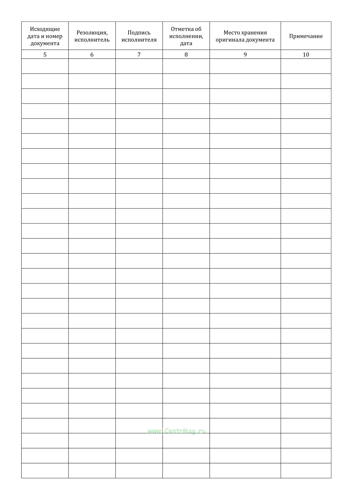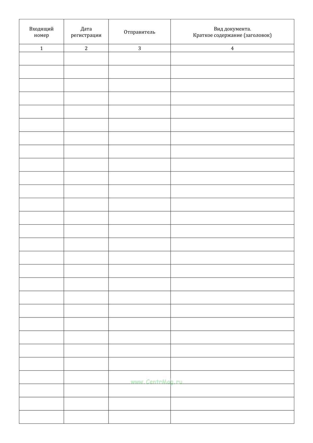 Журнал регистрации входящих документов имеет графы: