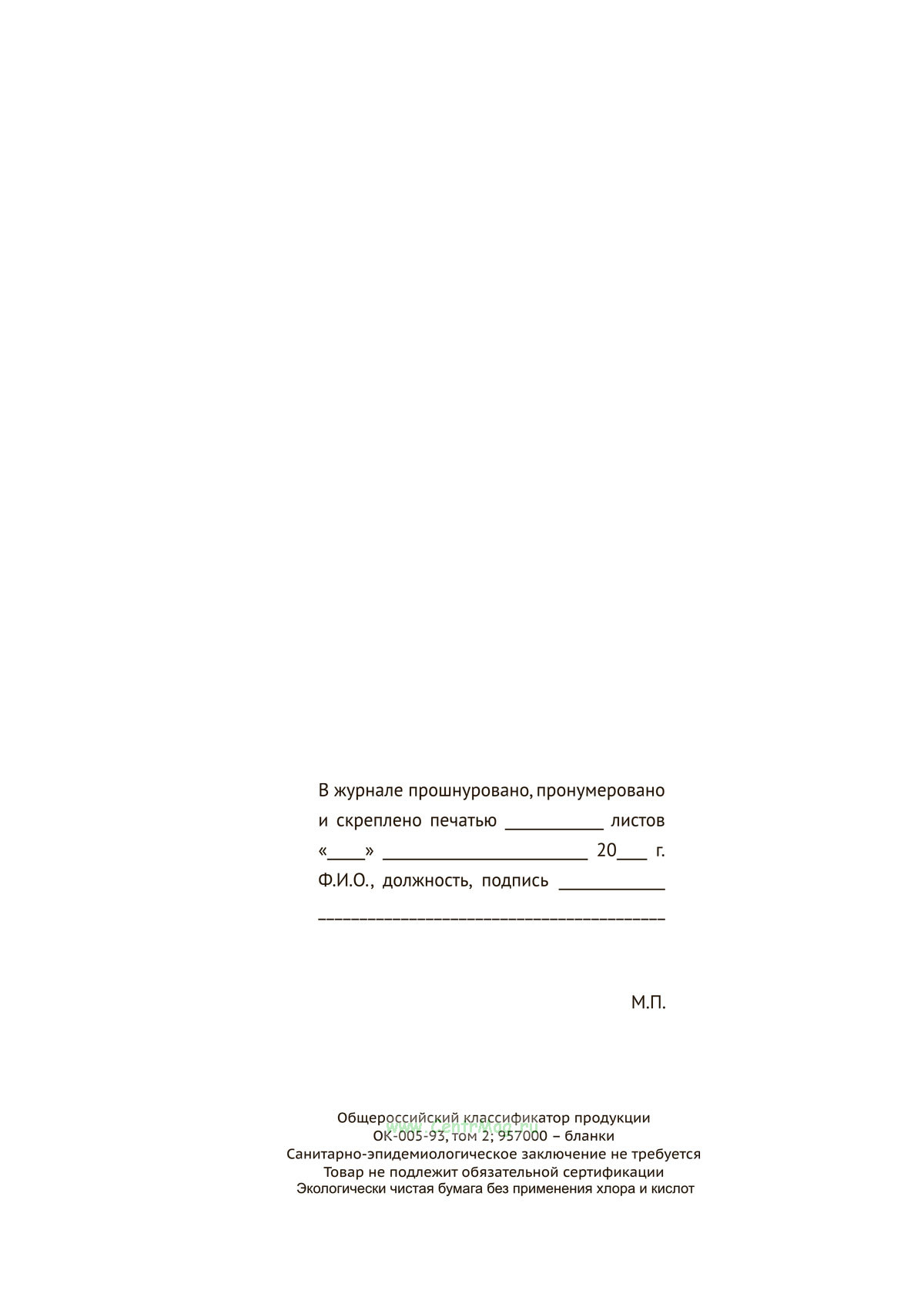 Вы получаете печатную продукцию прошнурованной и c местом для вашей печати в соответствии с действующими нормативными документами: