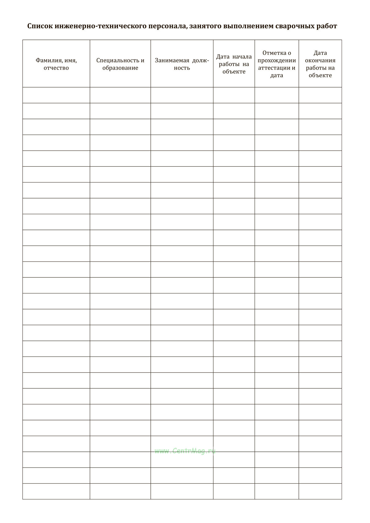 Список инженерно-технического персонала, занятого выполнением сварочных работ