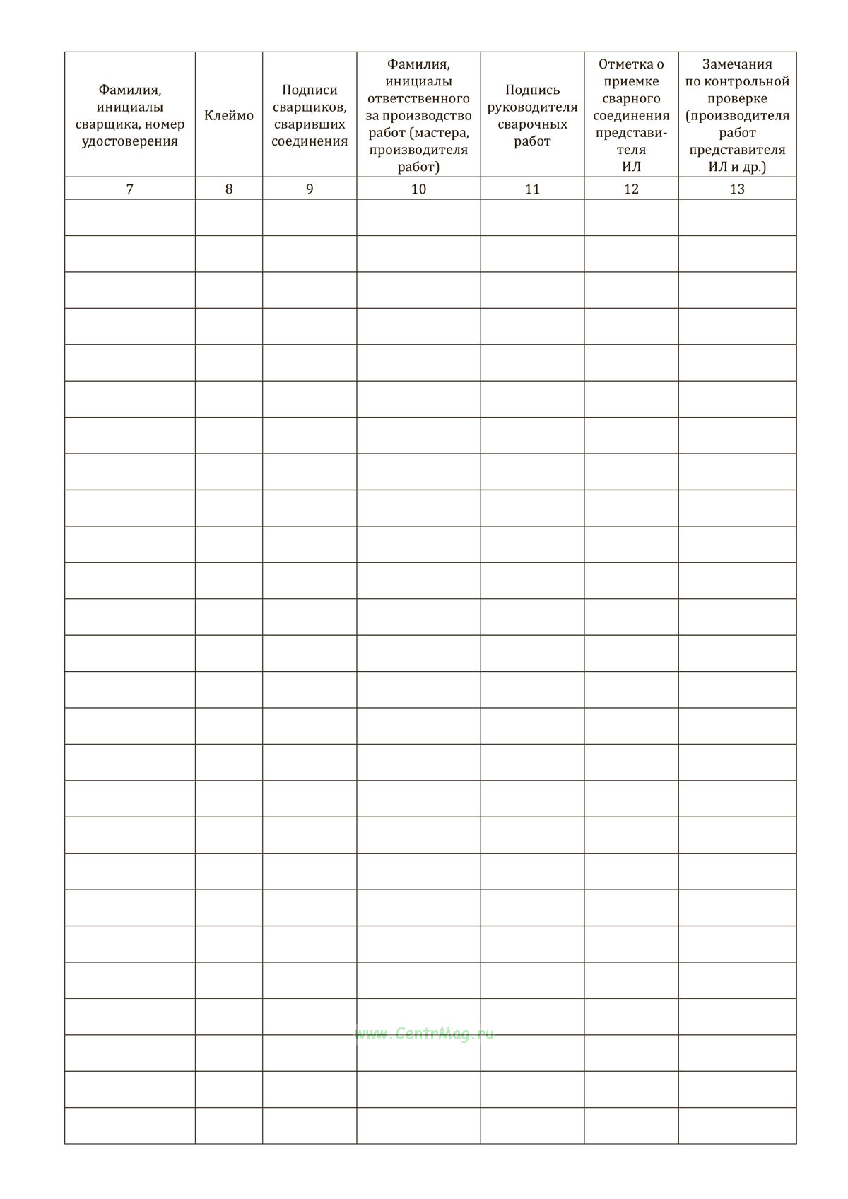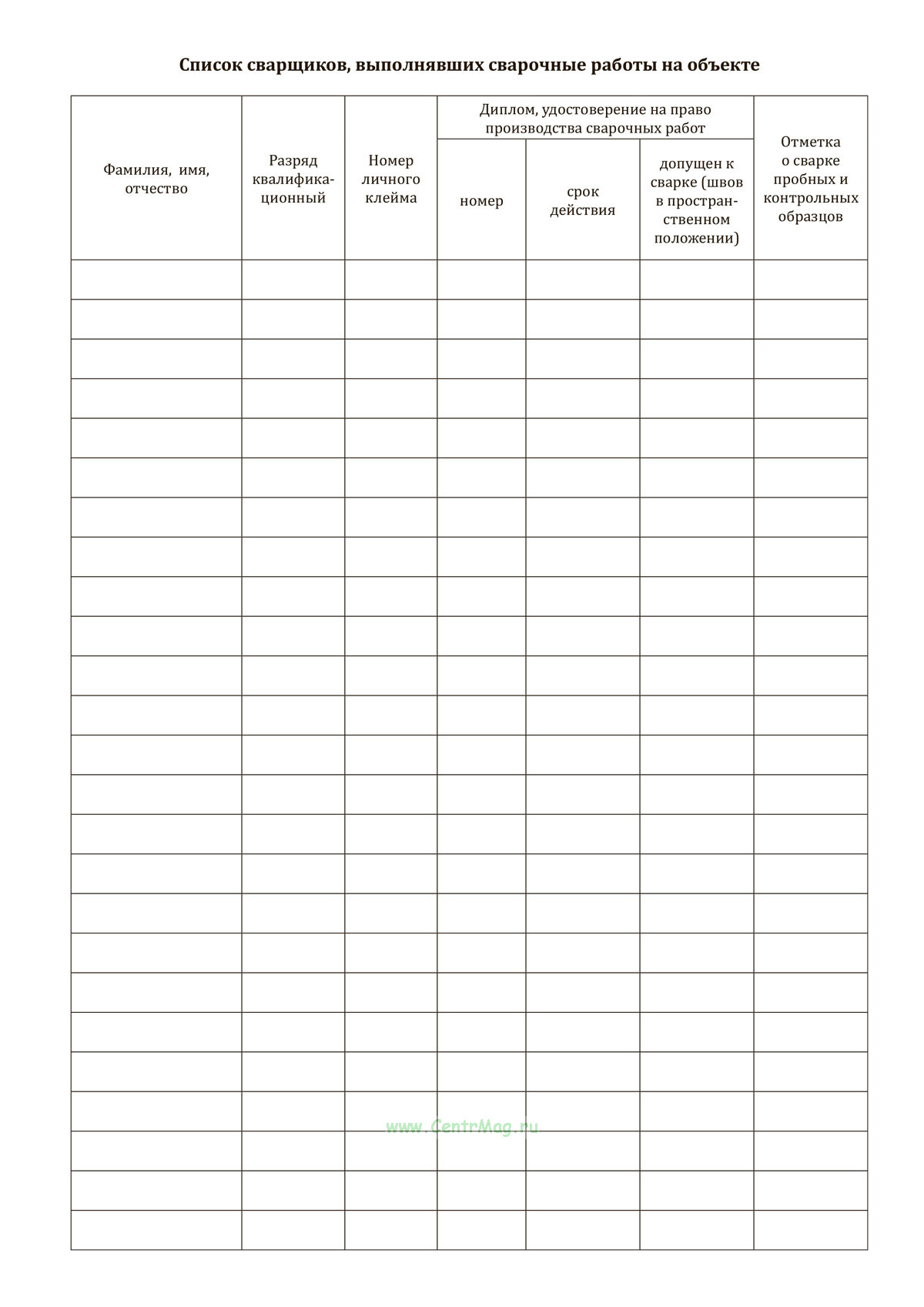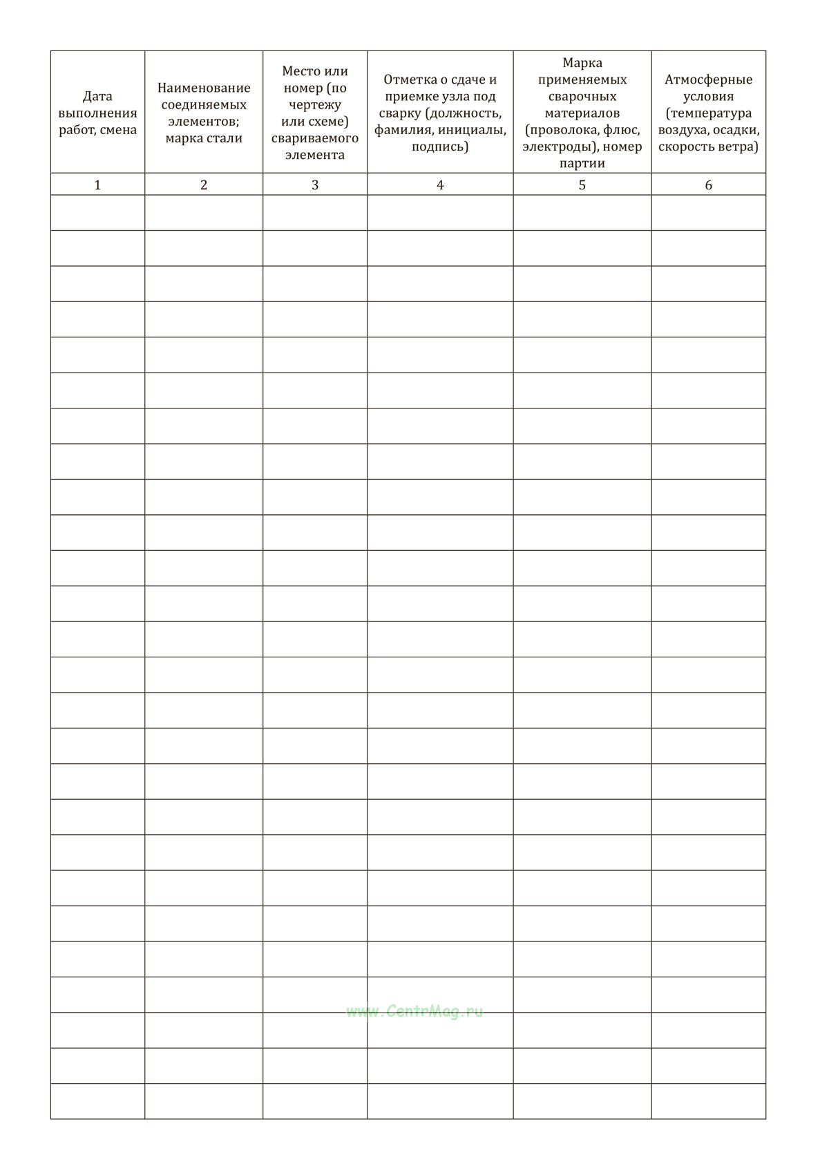 Журнал сварочных работ (Форма Д.82) имеет графы: