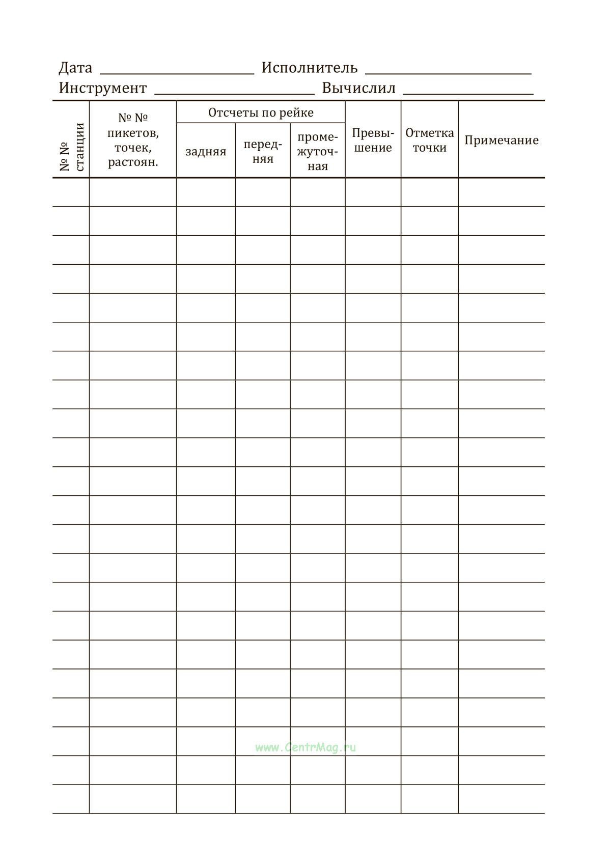 Журнал предназначен для регистрации данных полевых измерений при определении превышений между точками и вычисления их высотных отметок.