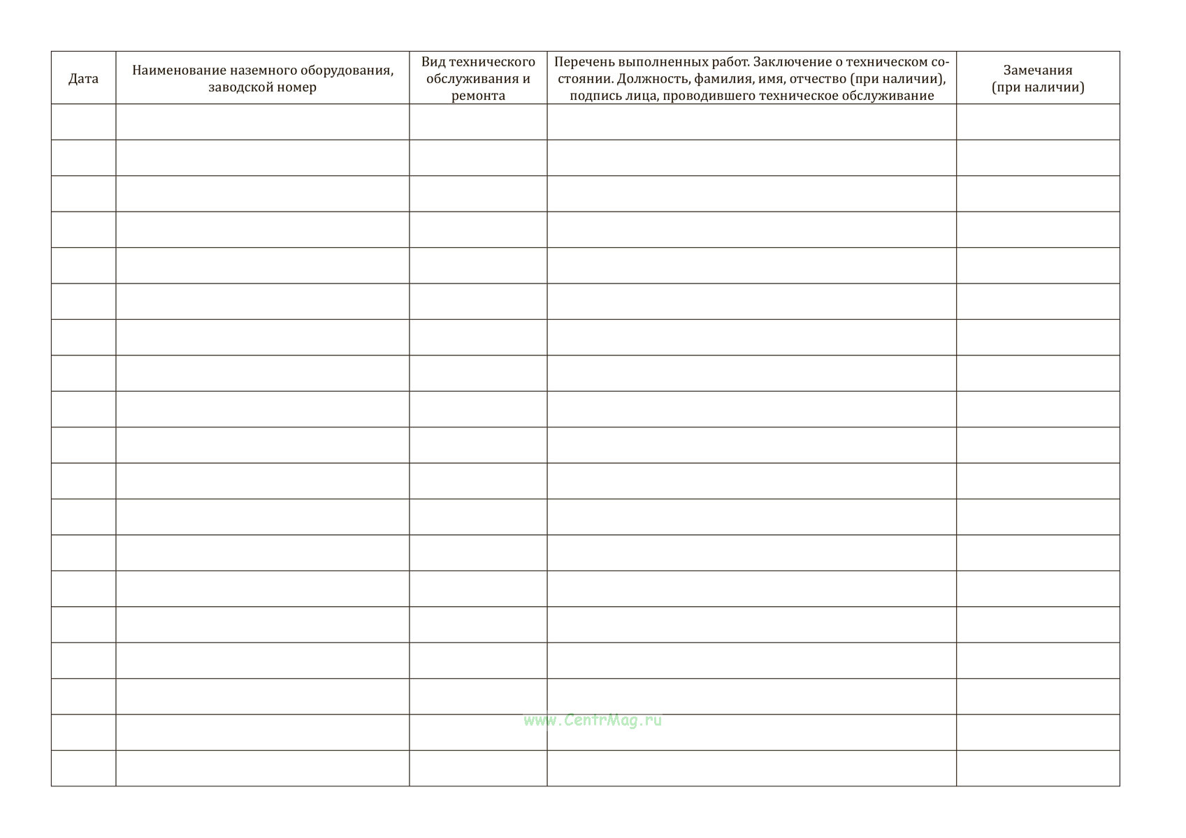Журнал технического обслуживания и ремонта наземного оборудования имеет графы: