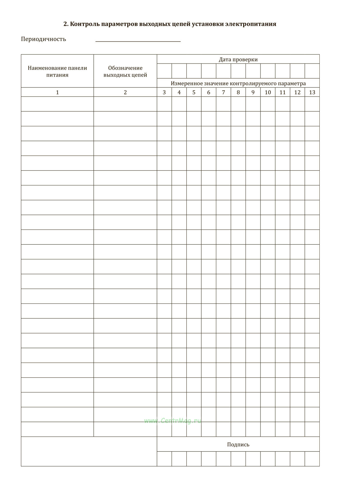 Журнал технической проверки установки электропитания предназначен для учета выполненных работ и оформления результатов проверки параметров установки электропитания устройств железнодорожной автоматики и телемеханики на постах электрической централизации, горочной автоматической централизации, диспетчерской централизации, в транспортабельных модулях автоматической блокировки с рельсовыми цепями тональной частоты, микропроцессорной централизации.
