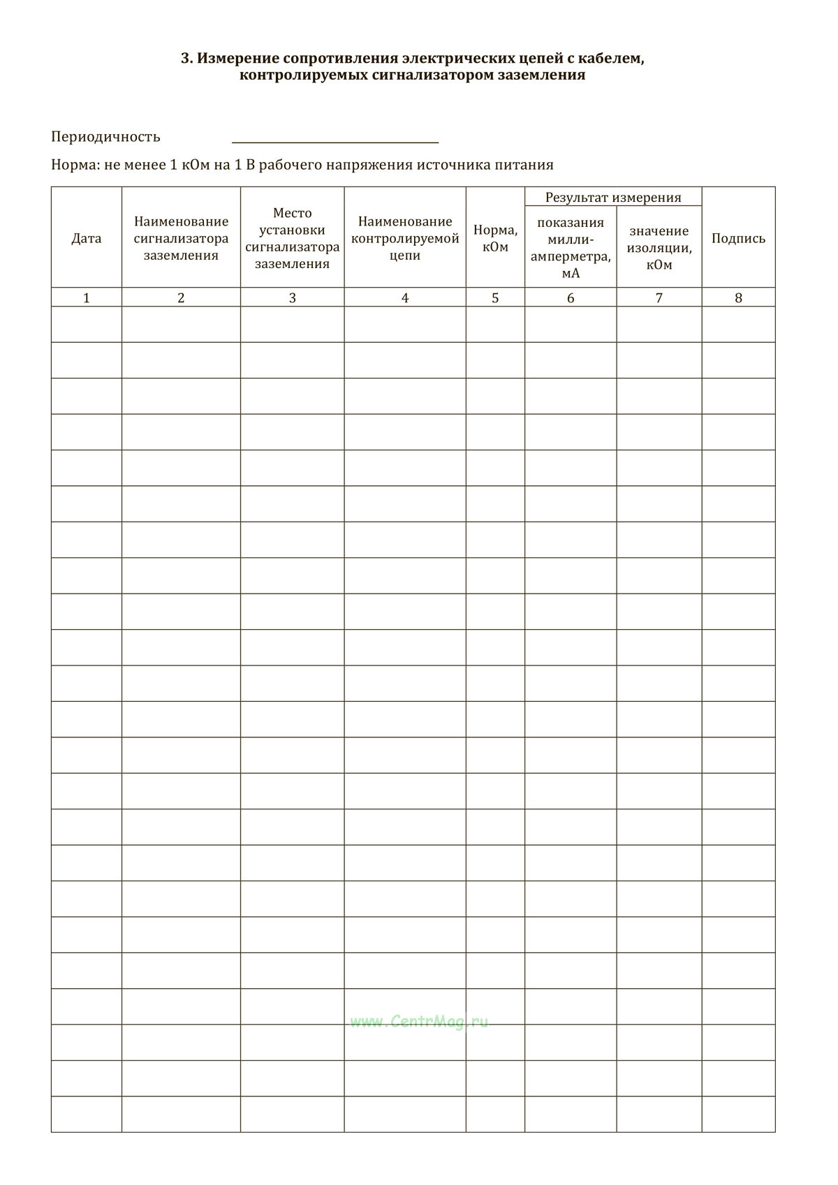 3. Измерение сопротивления электрических цепей с кабелем, контролируемых сигнализатором заземления