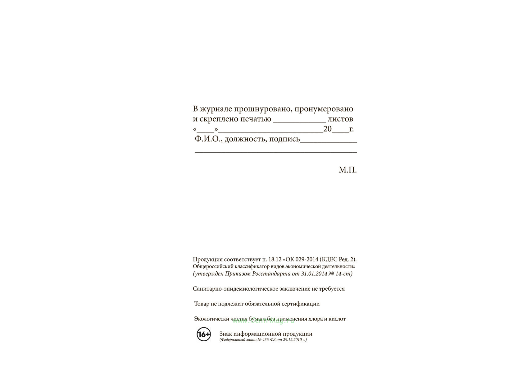 Вы получаете печатную продукцию прошнурованной и c местом для вашей печати в соответствии с действующими нормативными документами: