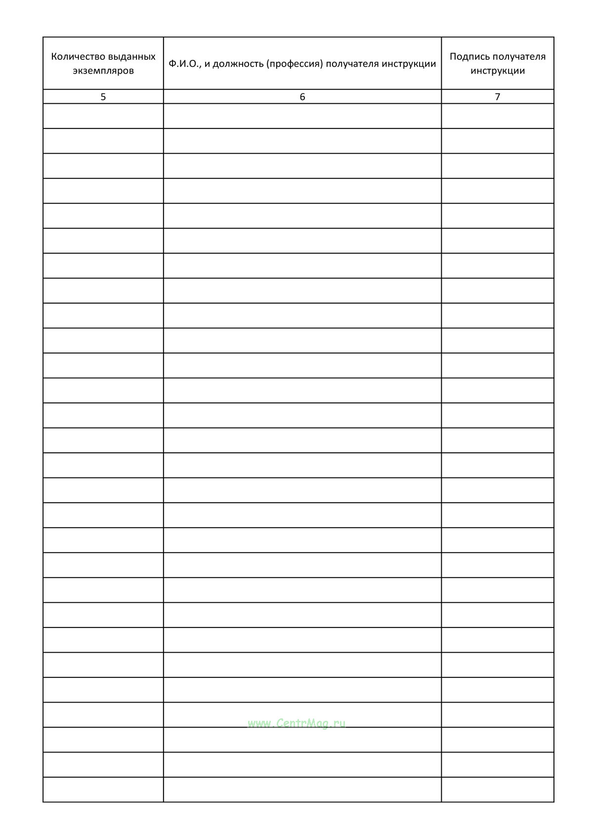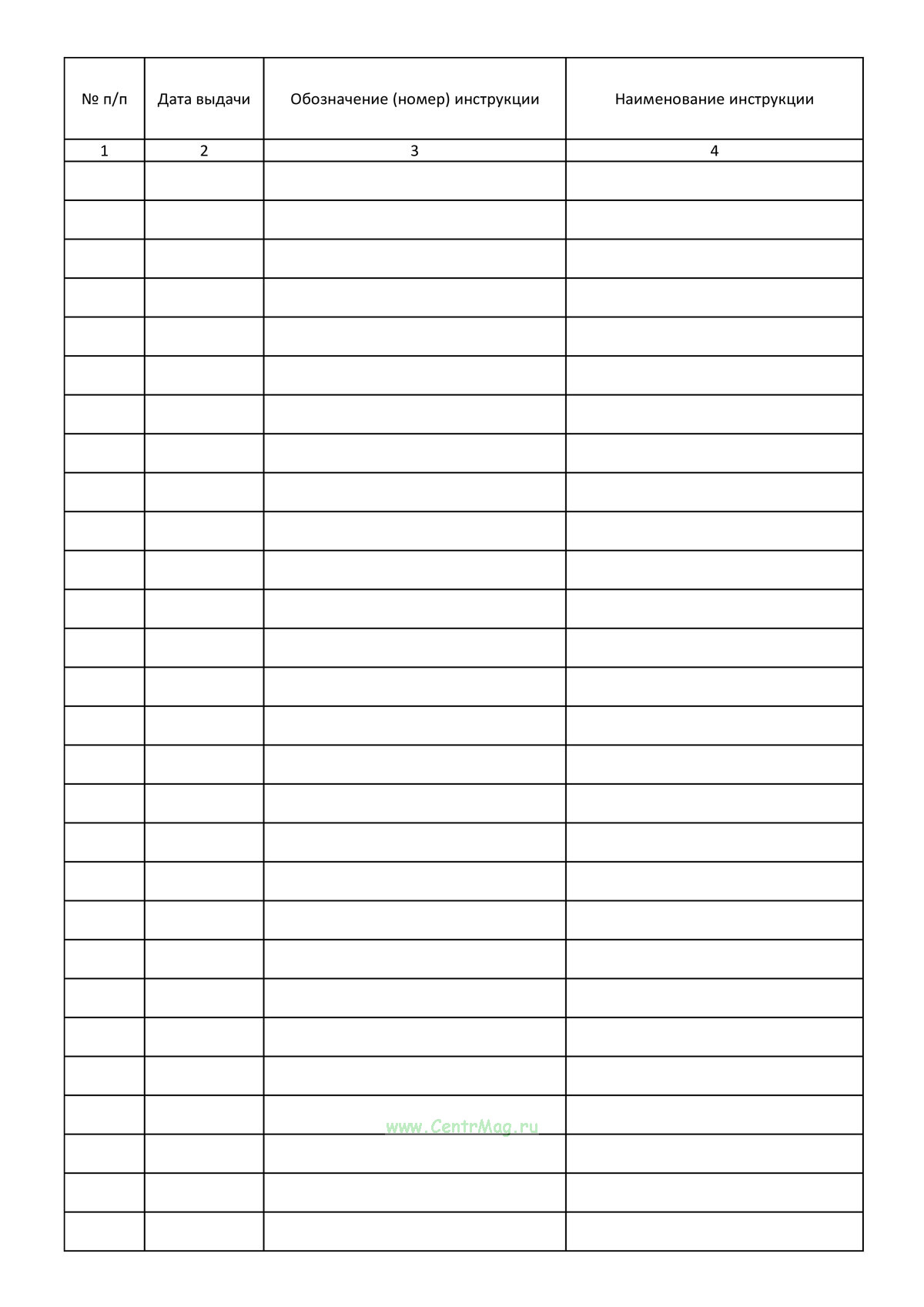 Журнал используется для регистрации и подтверждения факта выдачи работникам инструкций по охране труда и контроля их получения.
