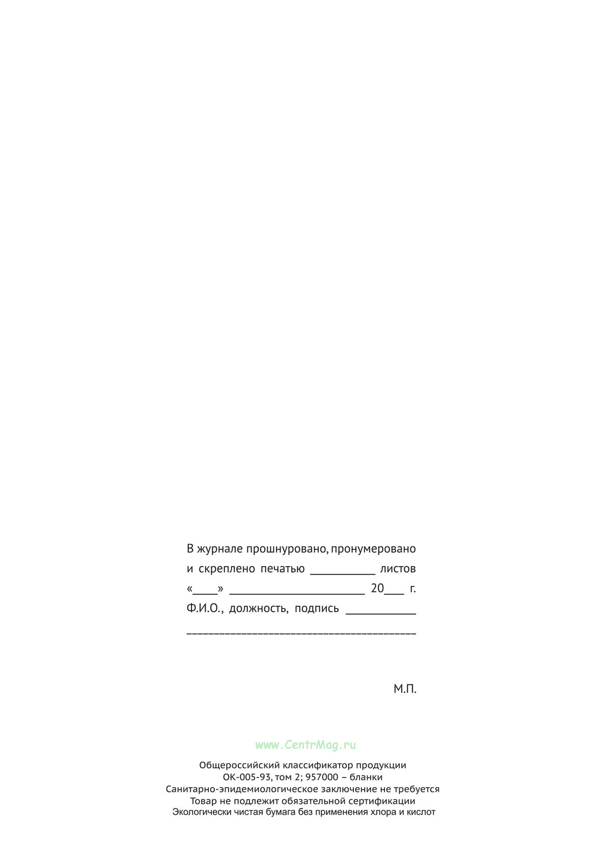 Вы получаете печатную продукцию прошнурованной и c местом для вашей печати в соответствии с действующими нормативными документами: