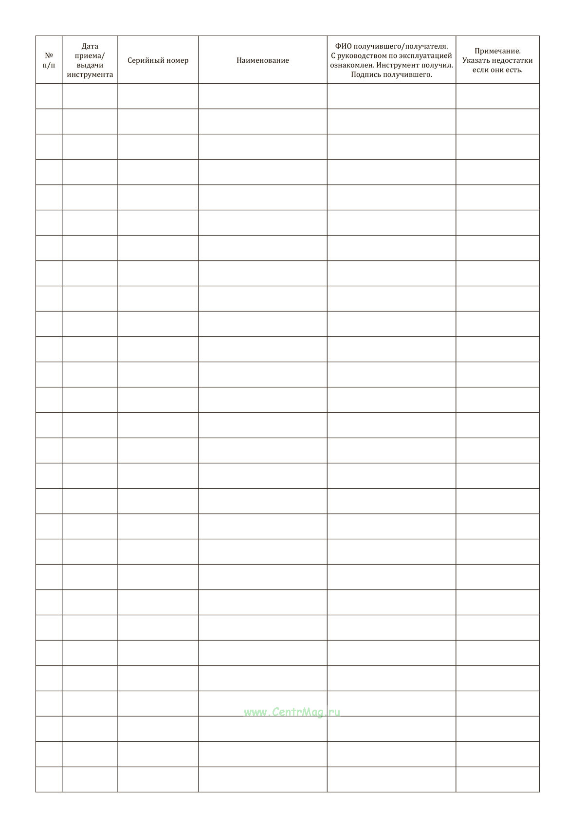 Журнал учета инструмента и оборудования имеет графы: