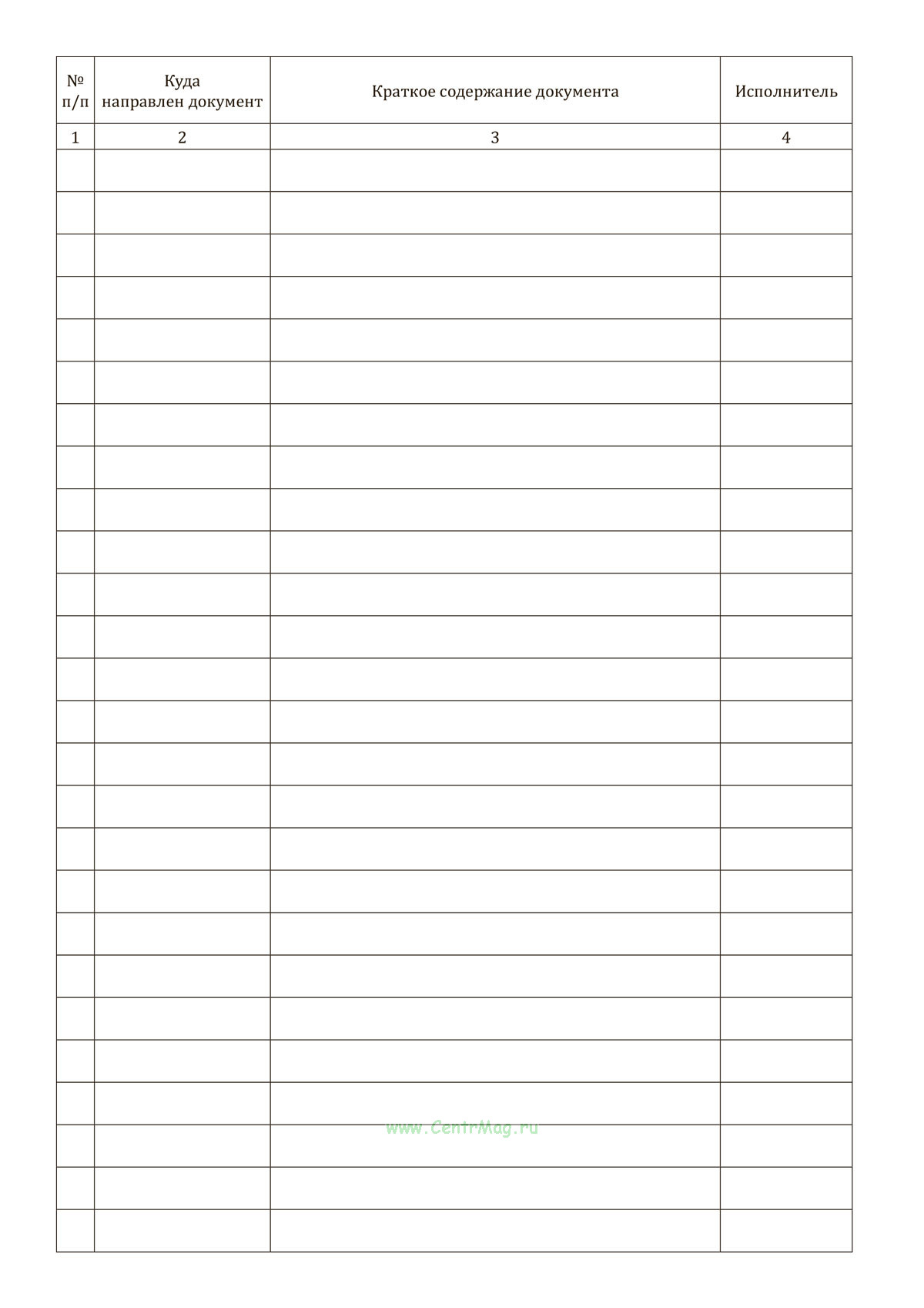 Журнал применяется для записи информации об отправленных телефонограммах, включая данные о получателе, краткое содержание документа, исполнителя и номер квитанции.