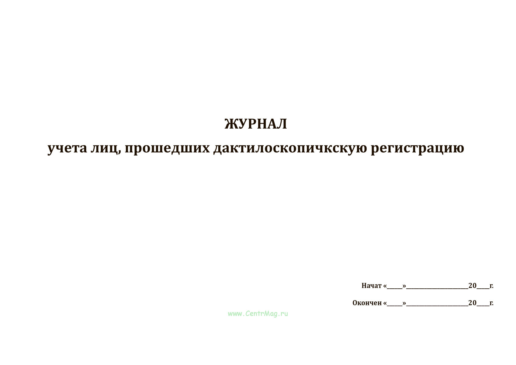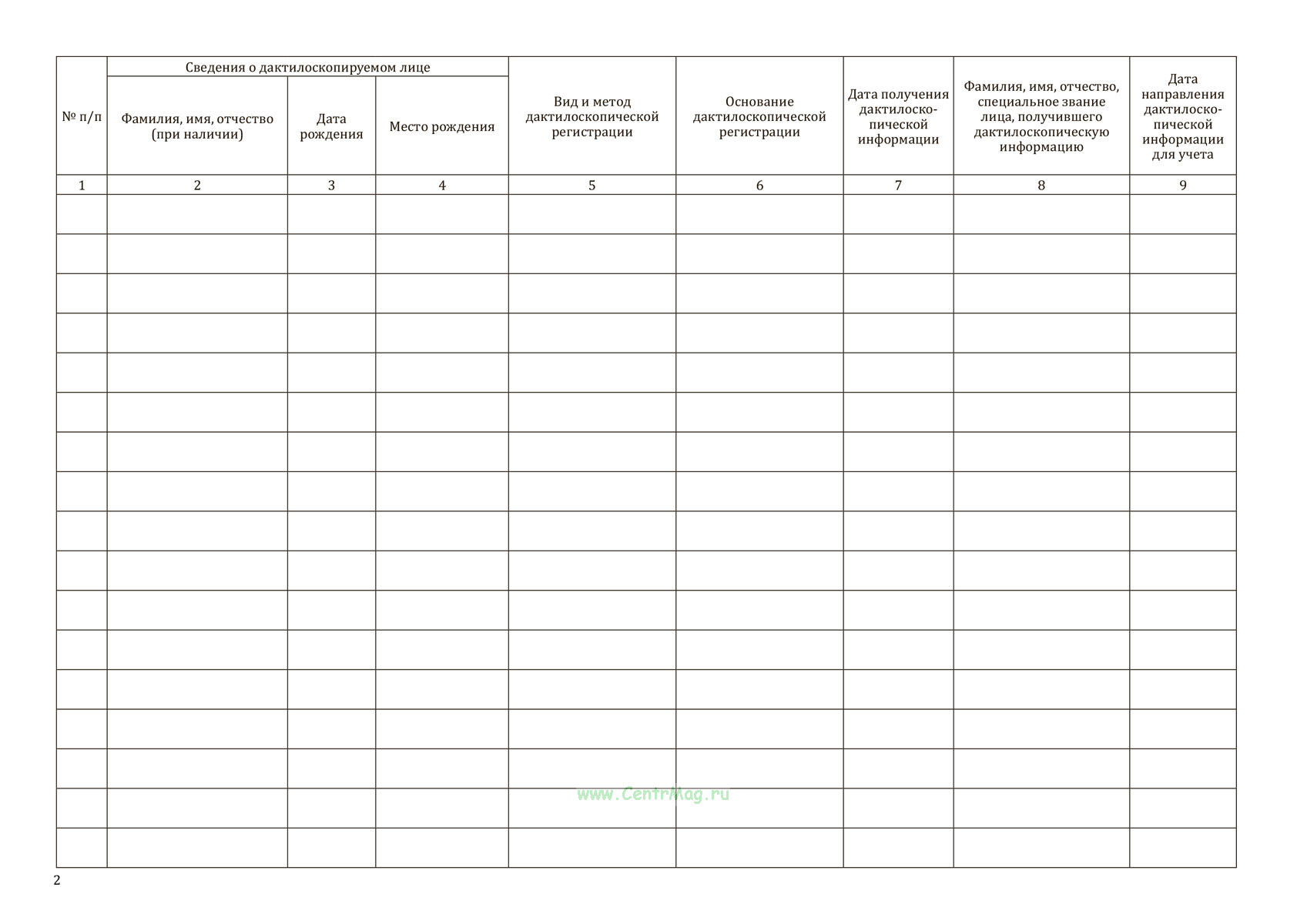 Журнал учета лиц, прошедших дактилоскопичкскую регистрацию имеет графы: