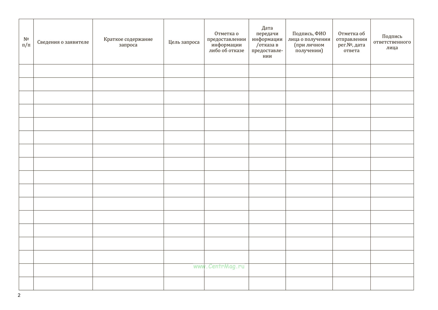 Журнал учета обращений относительно персональных данных работников имеет графы: