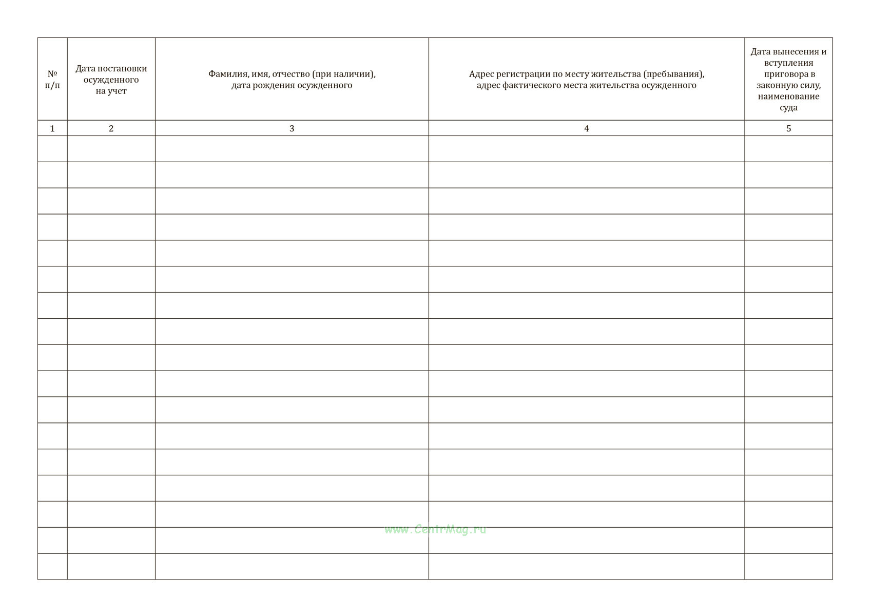 Журнал учета осужденных к обязательным работам имеет графы:
