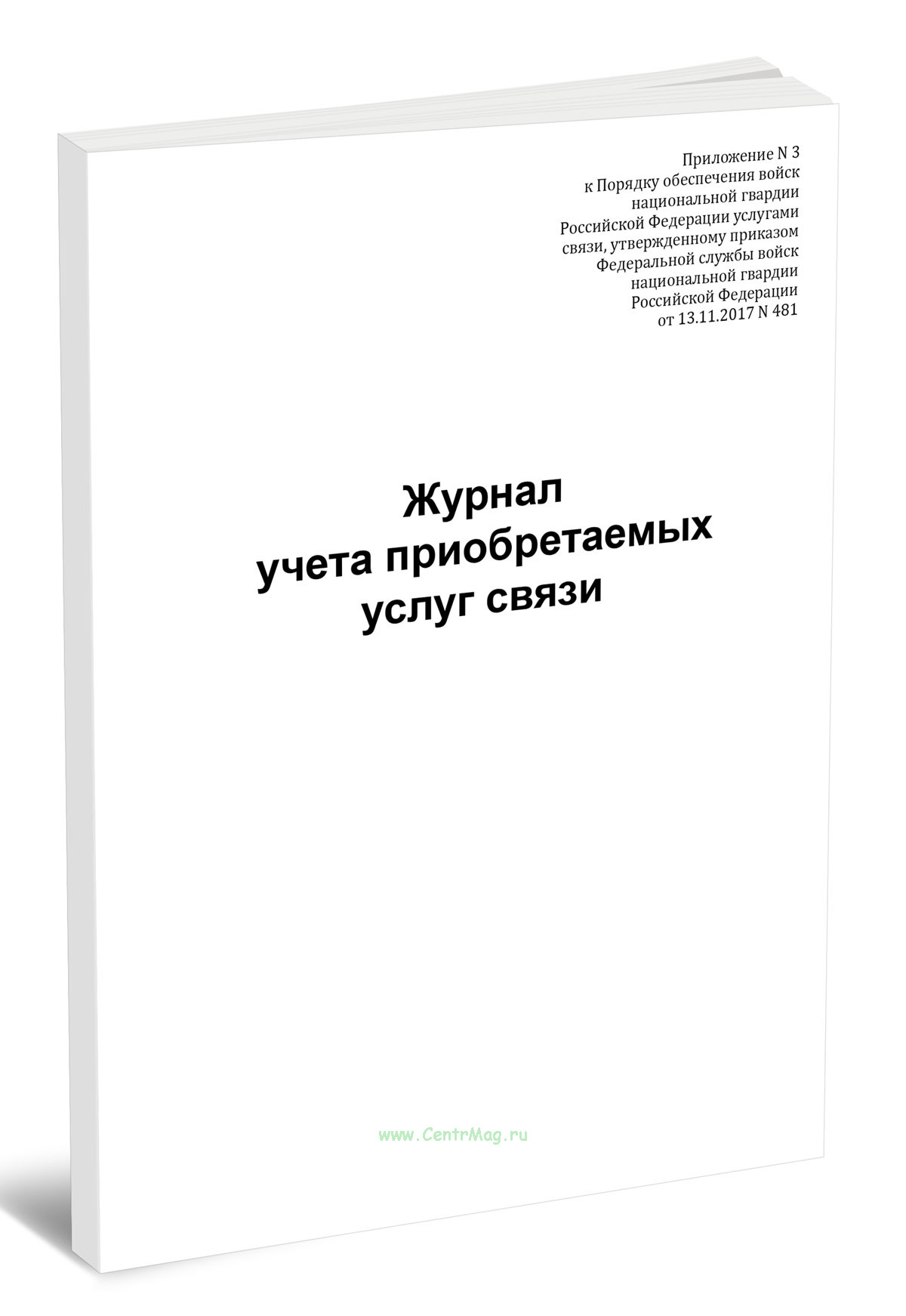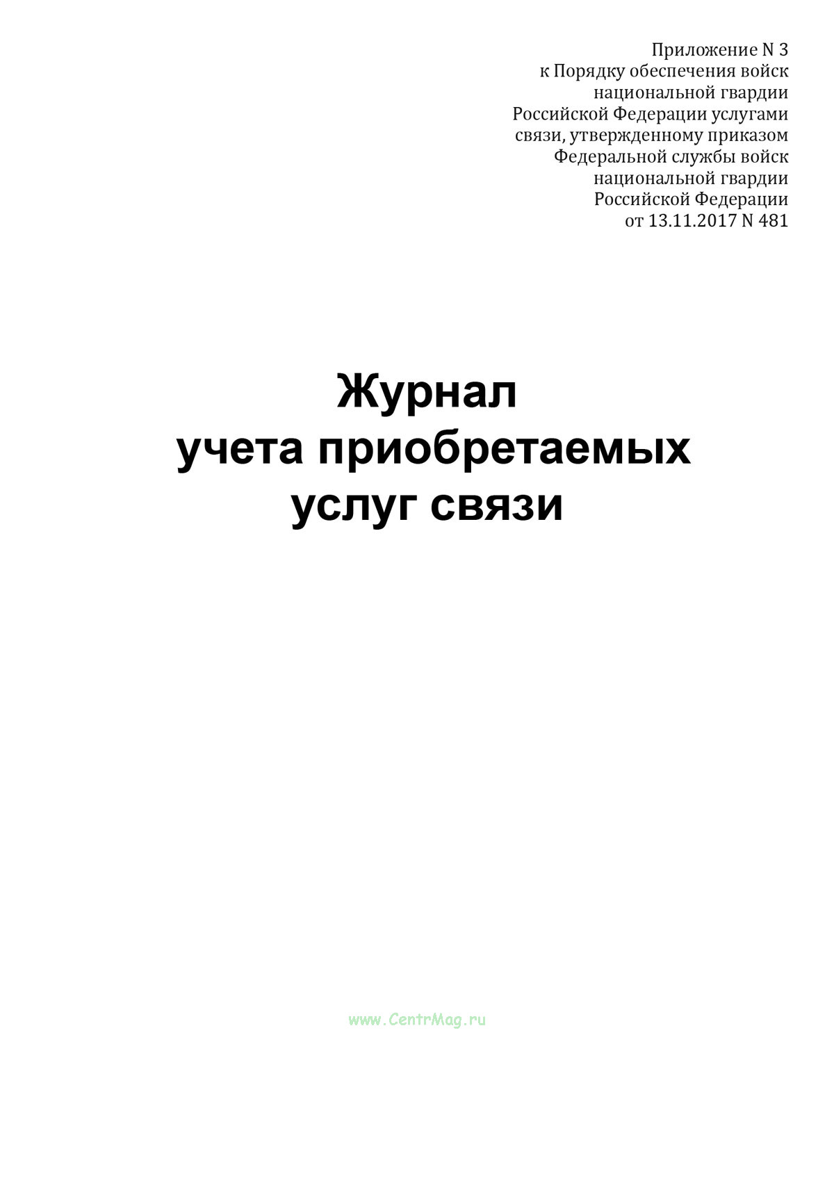 Форма Журнала учета приобретаемых услуг связи соответствует Приложению N 3 к Приказу Росгвардии от 13.11.2017 N 481 "Об утверждении Порядка обеспечения войск национальной гвардии Российской Федерации услугами связи"