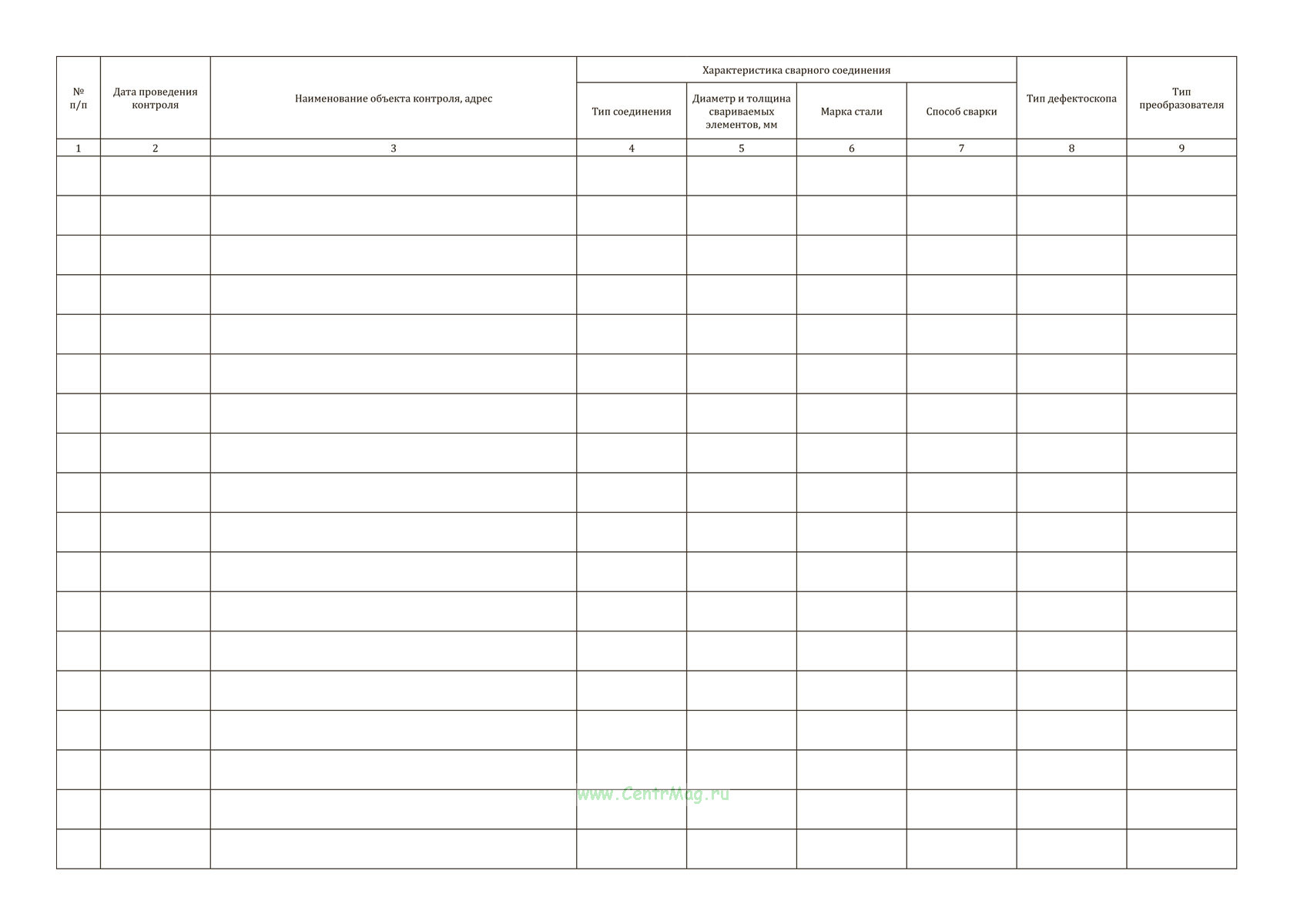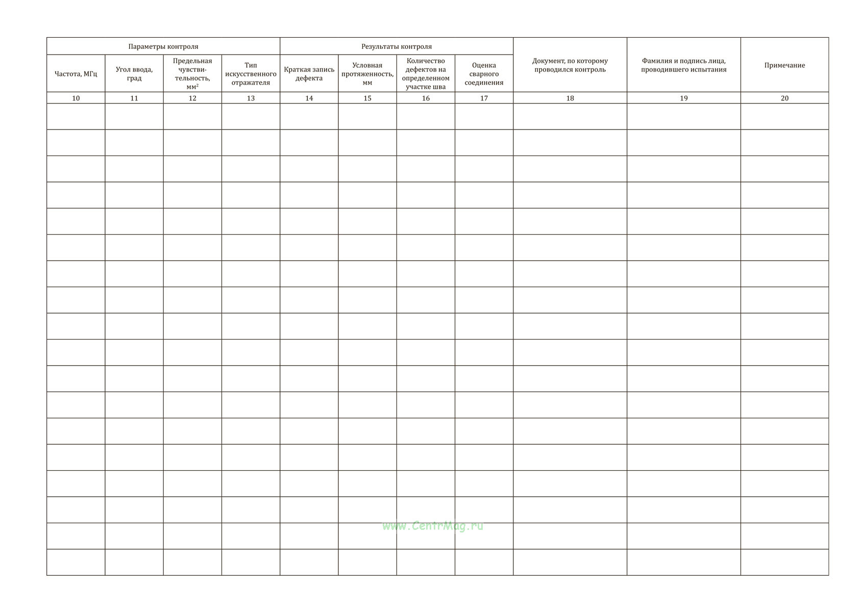 Журнал учета работ и регистрации результатов ультразвукового контроля имеет графы: