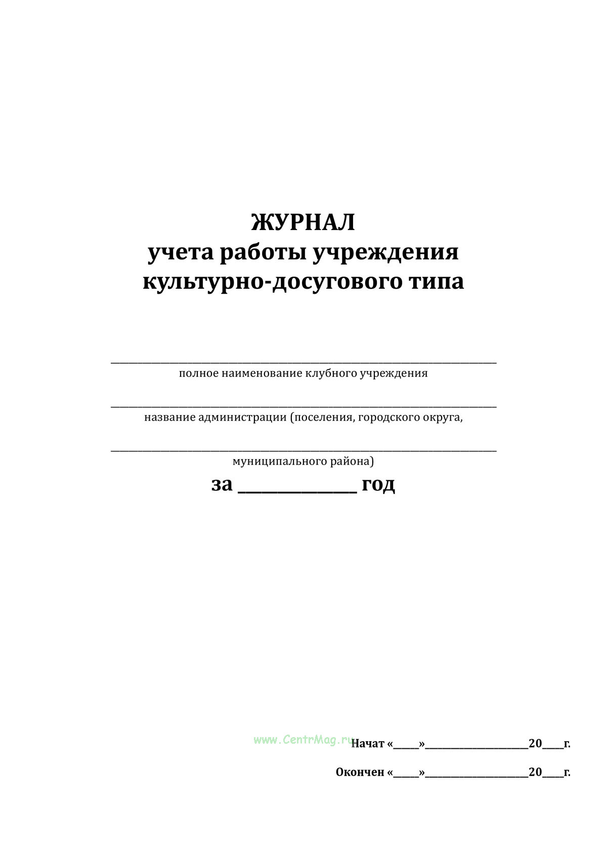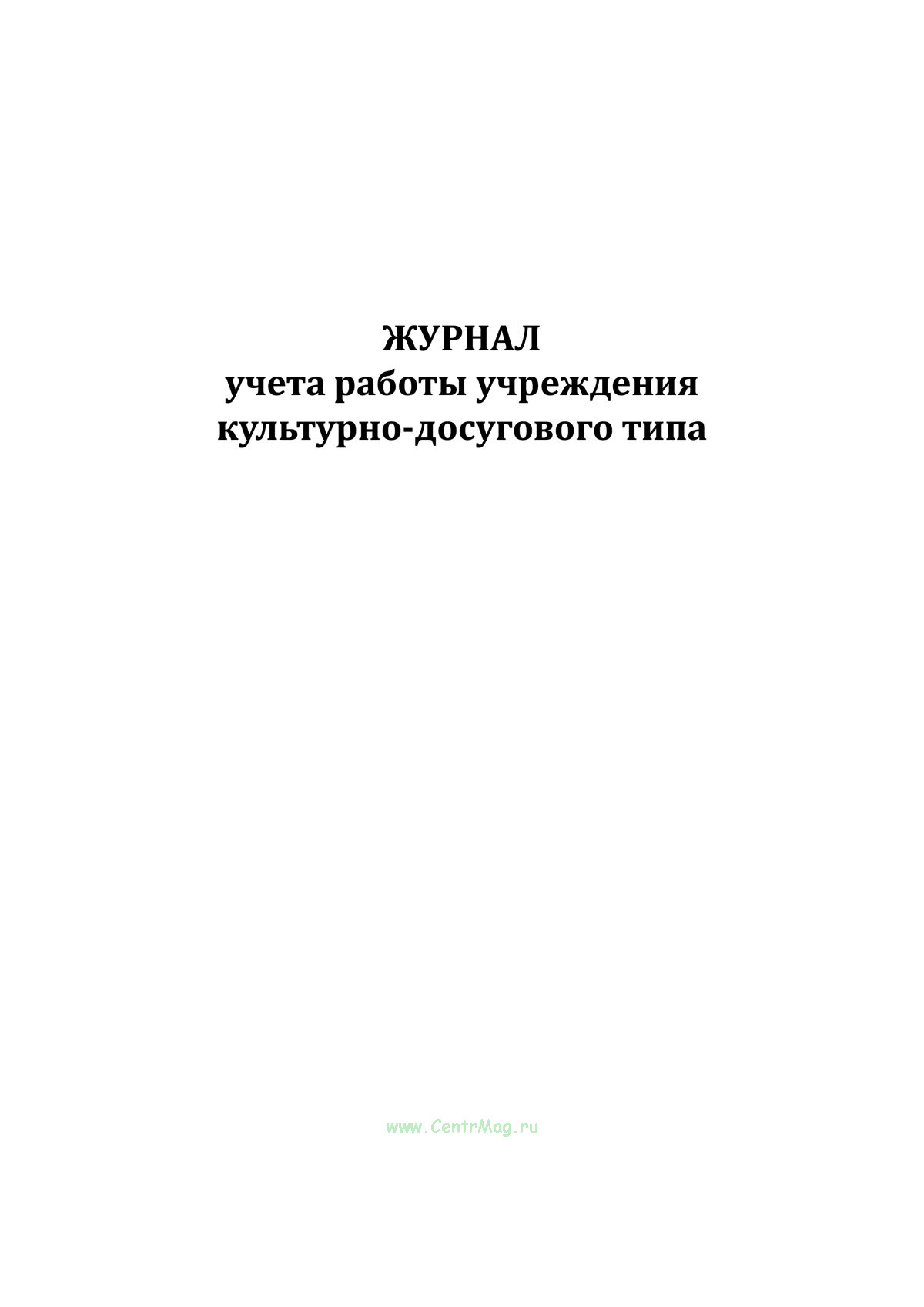 Журнал учета работы Клубного учреждения является документом строгой отчетности, служащий основанием для определения организационно-экономических показателей; формой контроля по итогам планирования работы, а также служит основанием для заполнения годового статистического отчета по форме 7-НК.