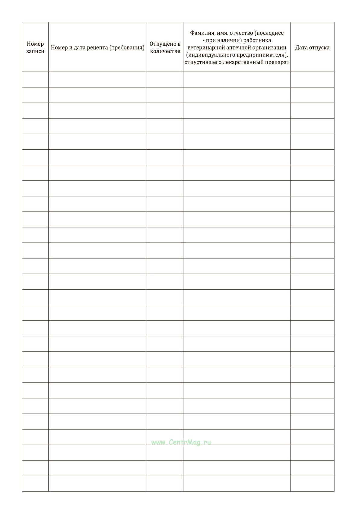 Журнал предполагается для систематизации и контроля всех рецептов и требований, связанных с назначением медикаментов и ветеринарных препаратов. Он служит основным инструментом для обеспечения безопасности, точности и прозрачности в процессе выписки и использования рецептурных бланков.