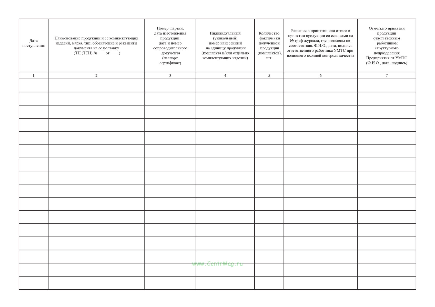 Журнал учета результатов входного контроля УМТС имеет графы: